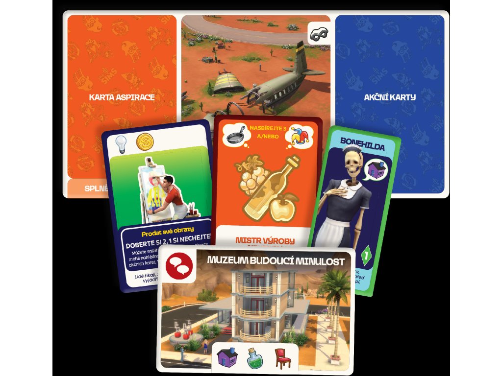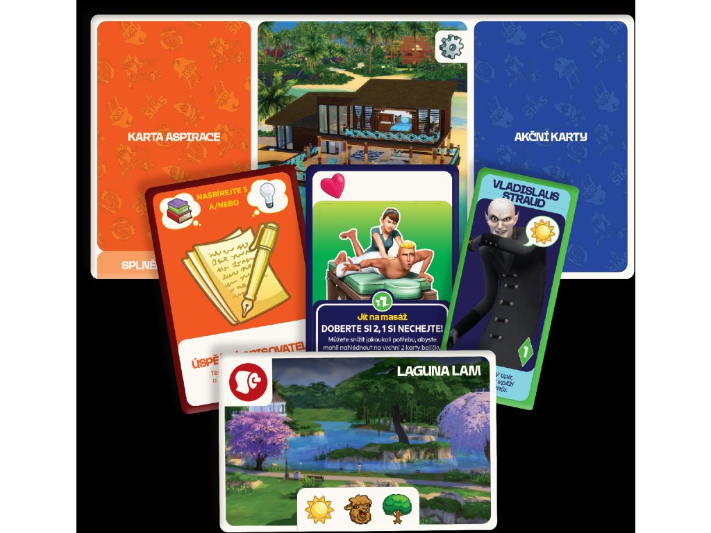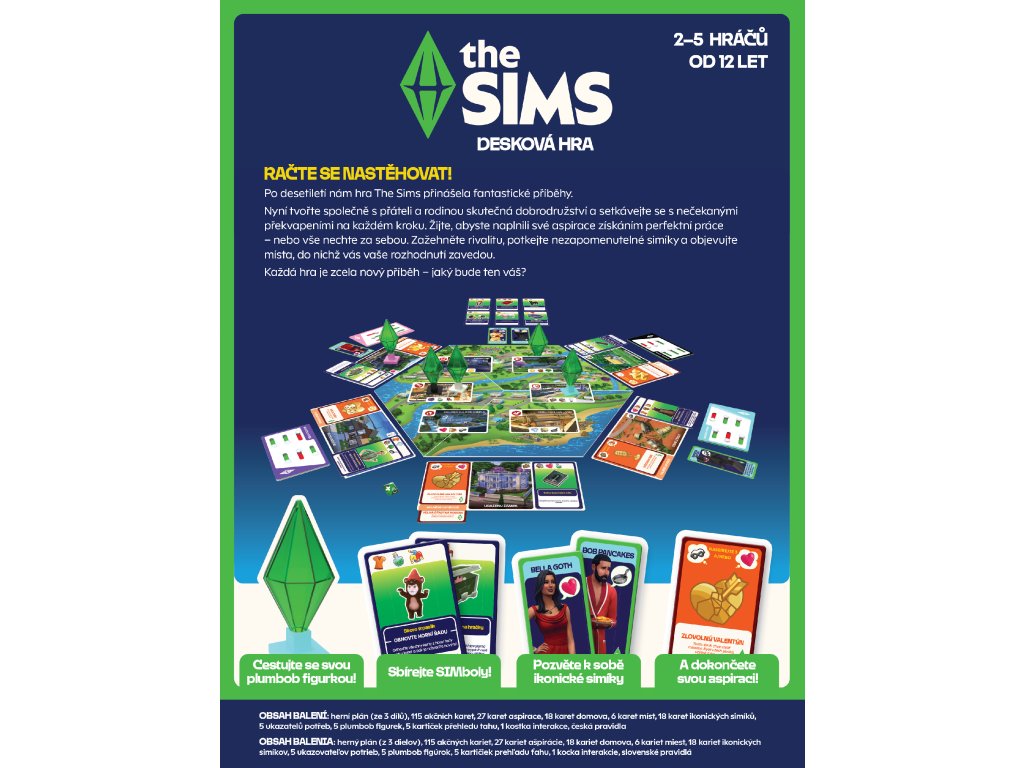 - Karty ikonických simíků oživují známé postavy, jejichž efekty dokážou výrazně zamíchat průběhem hry a změnit vaše plány.