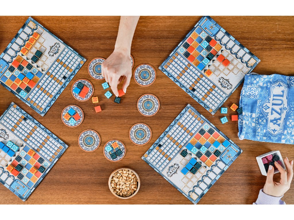 Portugalského krále Manuela I. při návštěvě paláce Alhambra v jižním Španělsku zcela okouzlila krása maurských dekorativních keramických dlaždic azulejos. Ty byly původně bílé a modré. Král unesen půvabem interiéru Alhambry okamžitě nařídil, aby byl jeho vlastní palác v Portugalsku vyzdoben podobnými dlaždicemi. Staňte se díky hře AZUL umělci! Tvořte návrhy a pokládejte dlaždice, které budou krášlit stěny královského paláce v Evoře.