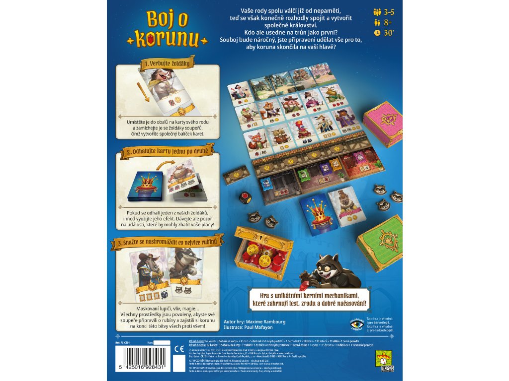 Během čtyř kol budete verbovat žoldnéře, posílat maskované lupiče na své soupeře, zvyšovat svůj vliv nebo používat trochu magie, abyste připravili své protivníky o rubíny a zajistili si korunu na konci této bitvy všech proti všem!