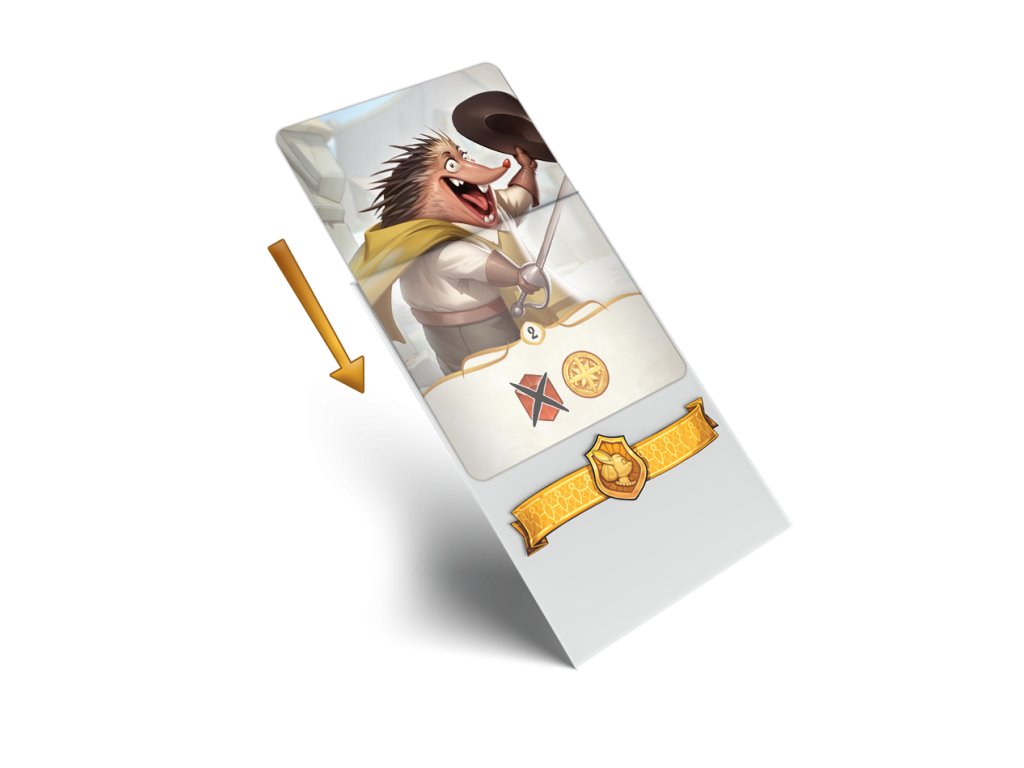 Umístěte je do obalů na karty svého rodu a zamíchejte je se žoldáky soupeřů, čímž vytvoříte společný balíček karet.