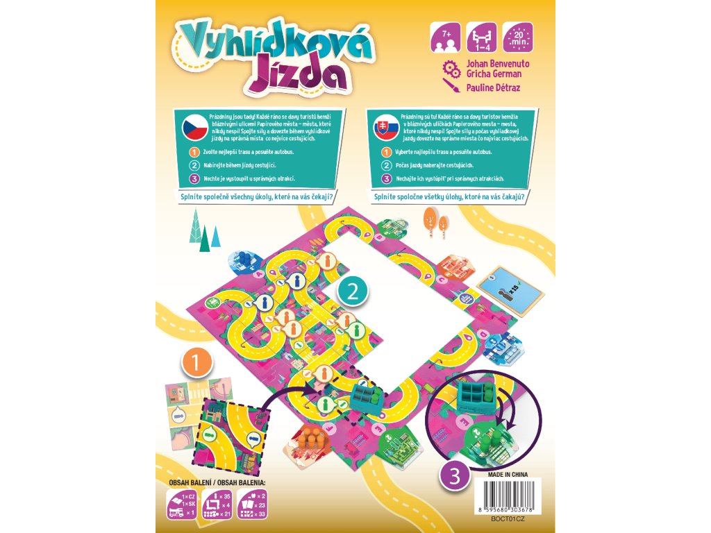 Vyhlídková jízda je kooperativní hra, ve které budete tvořit trasu pro turistický autobus a nabírat do něj cestující. Ty následně budete nechávat vystupovat u správných turistických atrakcí, abyste splnili rozmanité úkoly každého dne.