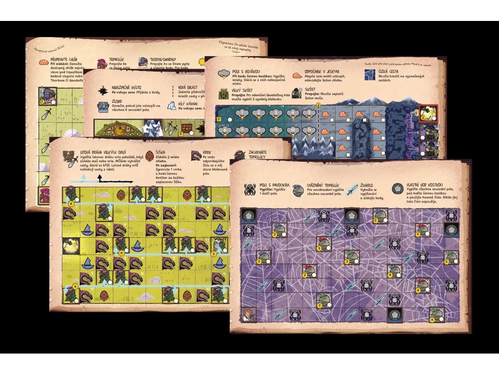 Ve hře Hobit aneb Cesta tam a zase zpátky soutěží 1–4 hráči o to, kdo vytvoří co nejvýnosnější cestu k Osamělé hoře, získá zpět poklad trpaslíků a porazí draka Šmaka.