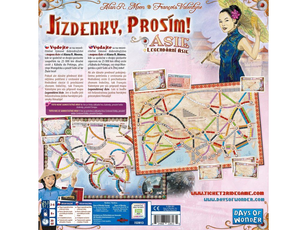 Vydejte se na neuvěřitelné týmové dobrodružství s mapou Asie od Alana R. Moona, kde se společně ve dvojici postavíte soupeřům na 25 000 km dlouhé cestě z Kábulu do Pekingu, přes stepi Mongolska a poušť Gobi až ke Žluté řece! Mapa Asie je navržena speciálně pro týmovou hru se 4 nebo 6 hráči.
