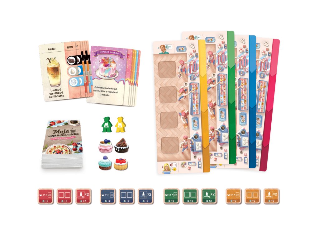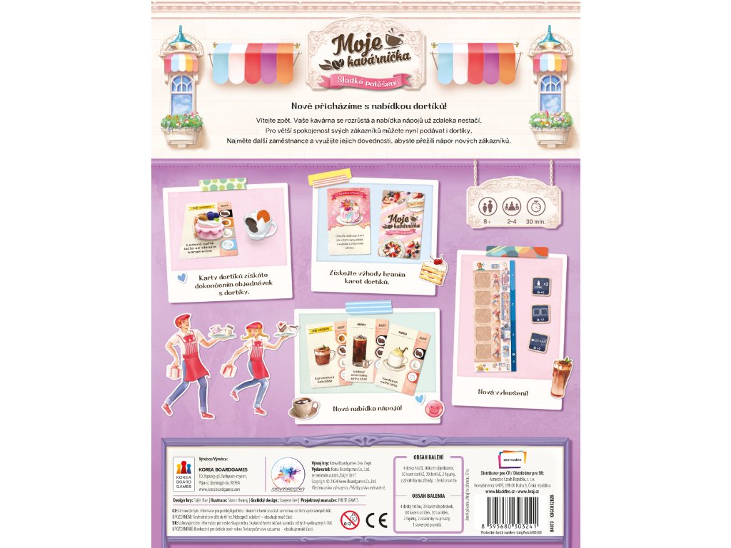 Moje kavárnička – Sladké potěšení je rozšíření základní hry Moje kavárnička. Abyste mohli hrát s tímto rozšířením, musíte kombinovat herní součásti tohoto rozšíření s herními součástmi základní hry.