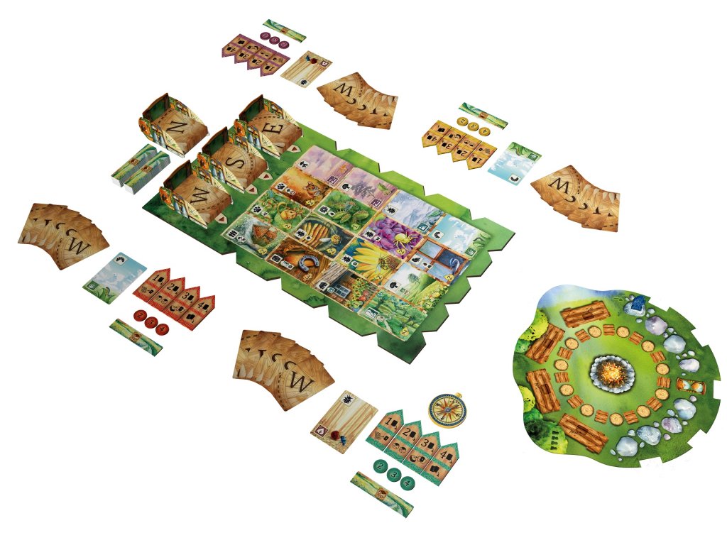 2 oboustranné desky s táborákem a 2 vyplňovací žetony