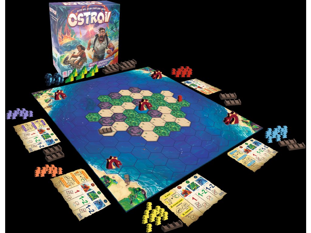 Ve hře Ostrov se budete starat o tým 10 dobrodruhů prchajících z potápějícího se ostrova. Každý dobrodruh u sebe má poklad, jehož hodnota je uvedena na spodní straně figurky.