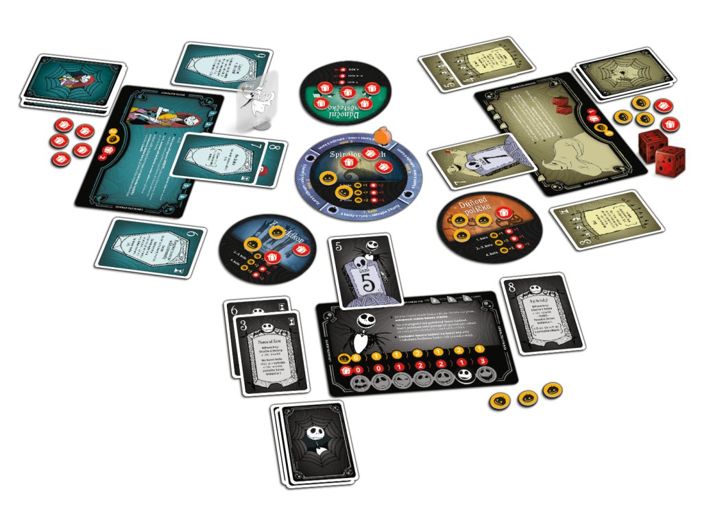 V této hře se chopíte role jedné z postav známého makabrózního filmu. Každá z nich je vybavena jedinečným balíčkem karet odrážejícím její osobnost. Vykládejte karty prozíravě, využívejte svých unikátních schopností a nasbírejte více žetonů svátků než soupeři!