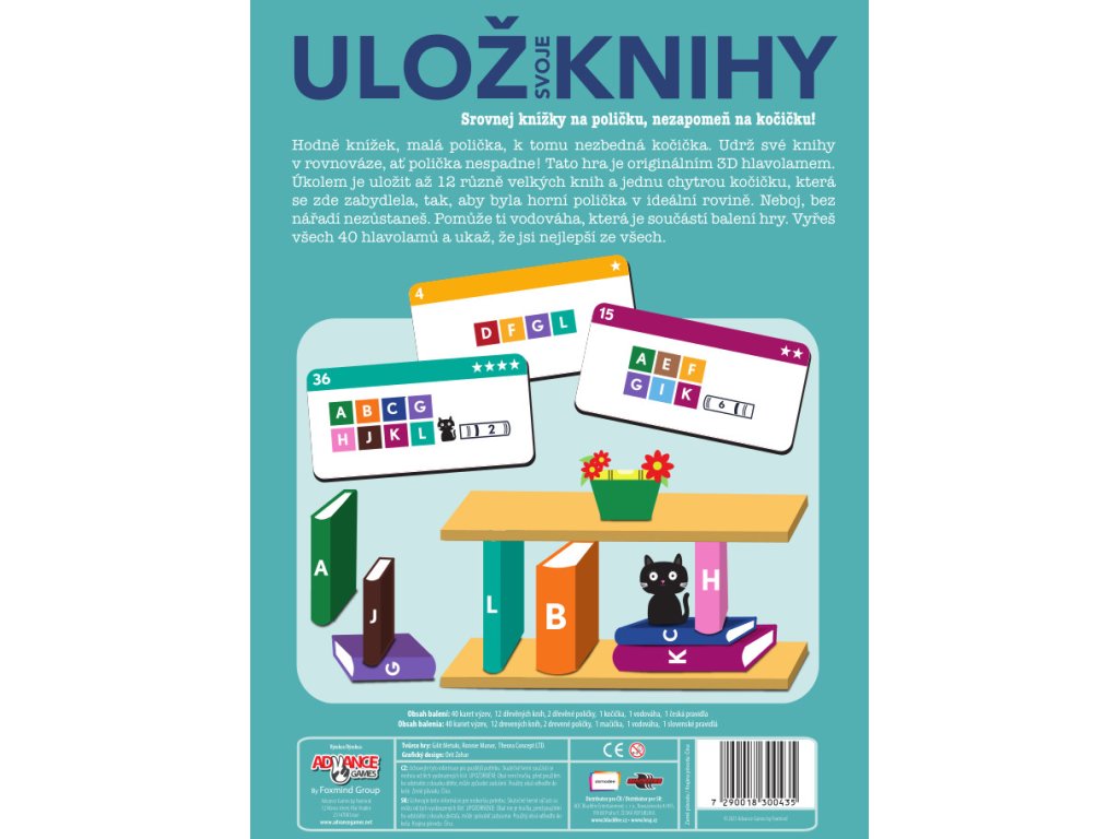 Hodně knížek, malá polička, k tomu nezbedná kočička. Udrž své knihy v rovnováze, ať polička nespadne! Tato hra je originálním 3D hlavolamem. Úkolem je uložit až 12 různě velkých knih a jednu chytrou kočičku, která se zde zabydlela, tak, aby byla horní polička v ideální rovině. Neboj, bez nářadí nezůstaneš. Pomůže ti vodováha, která je součástí balení hry. Vyřeš všech 40 hlavolamů a ukaž, že jsi nejlepší ze všech.