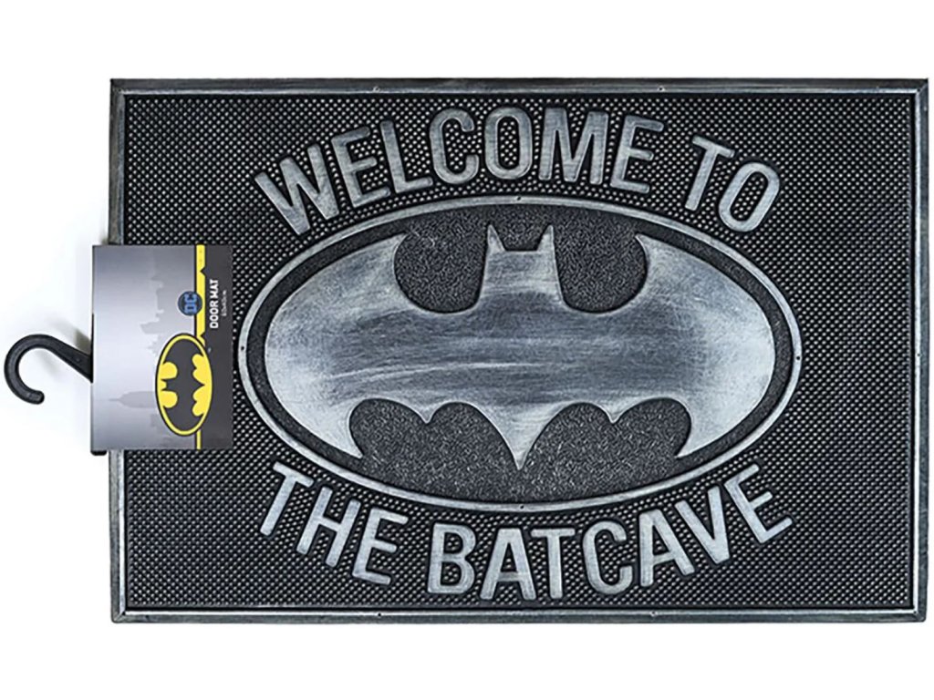 Šedá rohožka s textem a se znakem superhrdiny jménem: Batman.