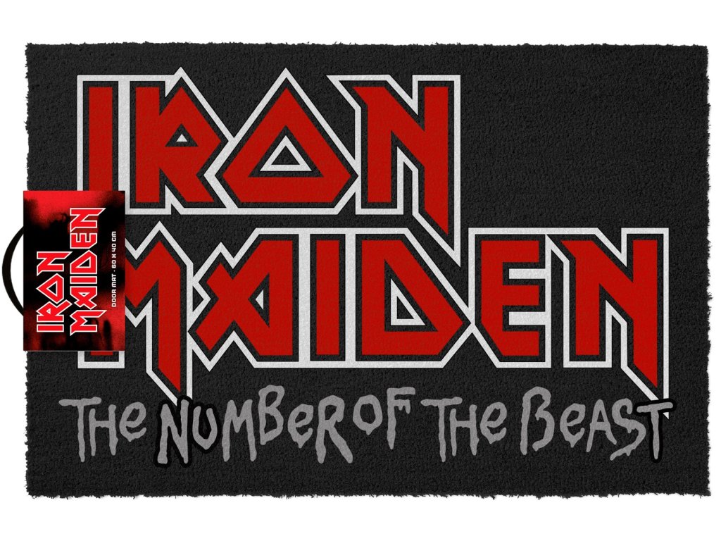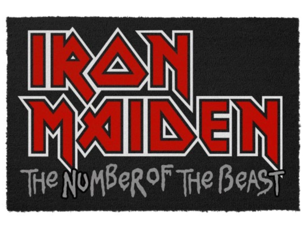 Černá rohožka s grafikou čísla šelmy heavymetalové kapely Iron Maiden. Rohožka je vhodným doplňkem vchodových dveří pro každého menšího i většího fanouška rockové muziky.