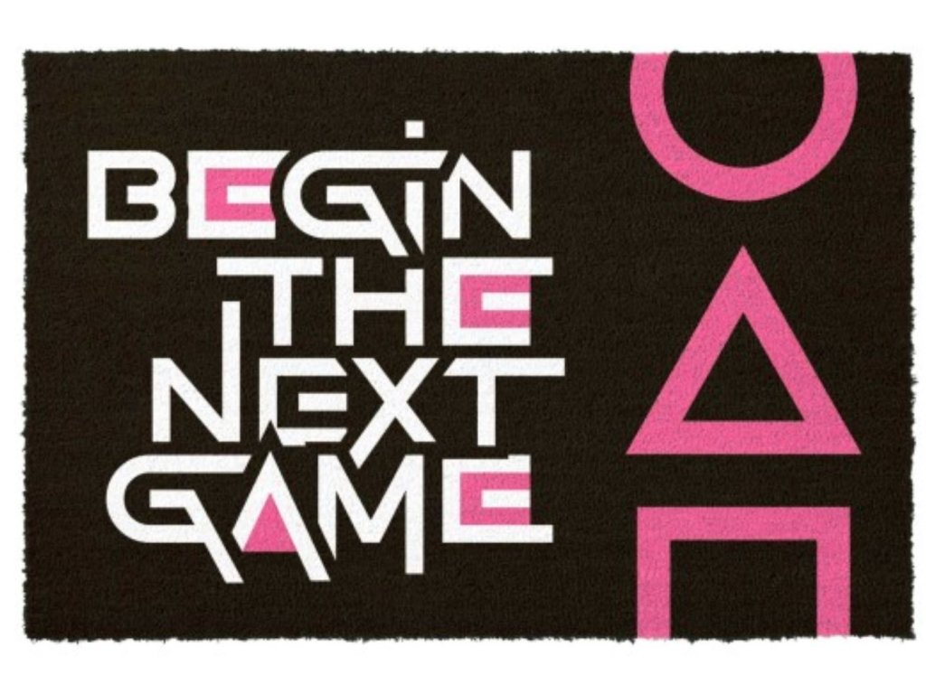 Černá rohožka s růžovými detaily a bílým nápisem "Begin The Next Game" (v překladu "Začněte další hru". Tato rohožka je pro všechny fanoušky seriálu Hra na oliheň.