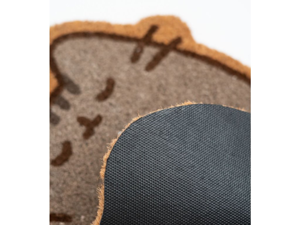 Hnědá rohožka vyvedená v motivu a tvaru kočky Pusheen.