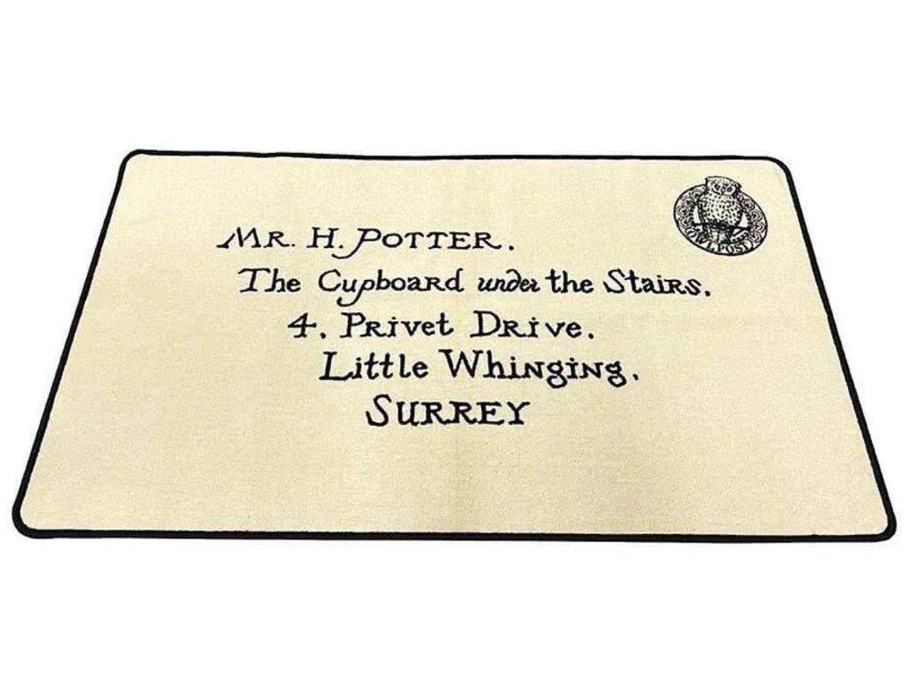 Vnitřní rohožka béžové barvy s vyobrazením obálky dopisu s přijetím Harryho Pottera do školy a čar kouzel v Bradavicích.