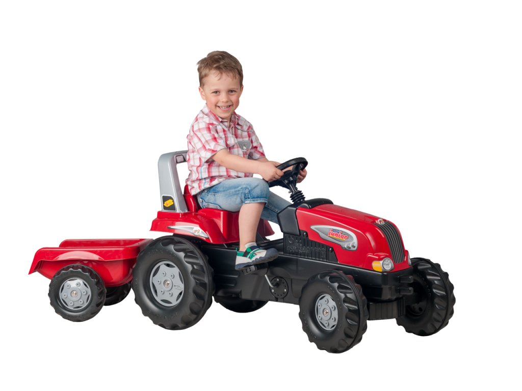 Šlapací traktor Rolly Juniors vlečkou červený akční