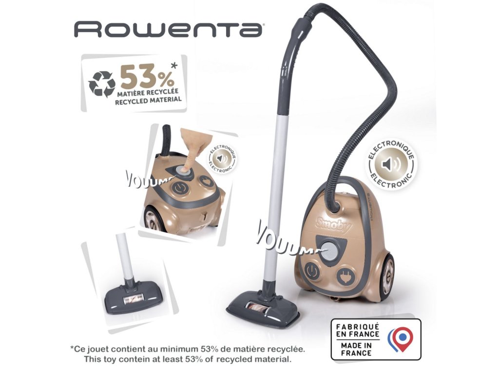 Kompaktní lehký vysavač Rowenta s elektronickým zvukem sání. Díky kompaktním rozměrům a nízké hmotnosti se s vysavačem snadno manipuluje i menším dětem. Tento výrobek obsahuje minimálně 53 % recyklovaného materiálu. Rozměry produktu (DxŠ): 27 x 20 cm.