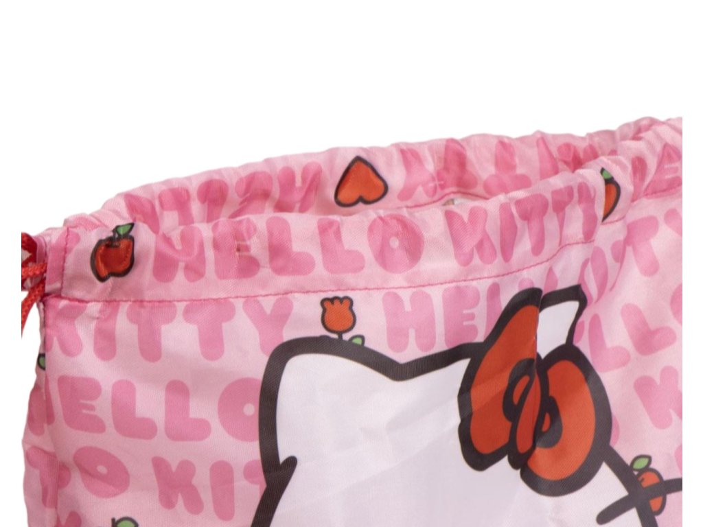 Oficiální produkt - set dětské osušky, kšiltovky a gym pytlíku z katalogu výrobků s grafikou, fotografiemi a licencí oblíbené kočky Hello Kitty.