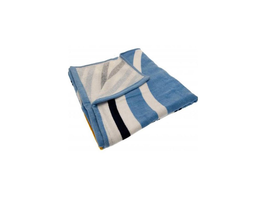 Ručník modré barvy se znakem a nápisy slavného fotbalového klubu FC Manchester city.