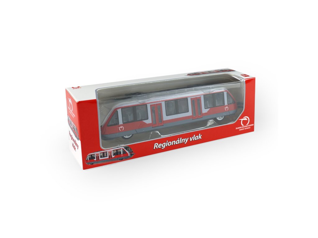 Originální 17 cm dlouhý regionální vlak Železniční Společnost Slovensko nesmí chybět v pokojíčku žádnému fandovi vláčků! Tento úžasný kovový model vlaku je ideální jako dárek nebo jako sběratelský kousek! Při koupi více kusů je lze jednoduše zapojit za sebou. Vláček jezdí na zpětný chod. Rozchod kolejnice je 1,2 cm.