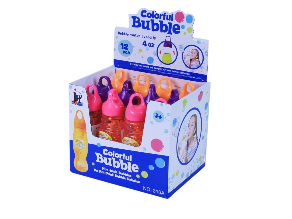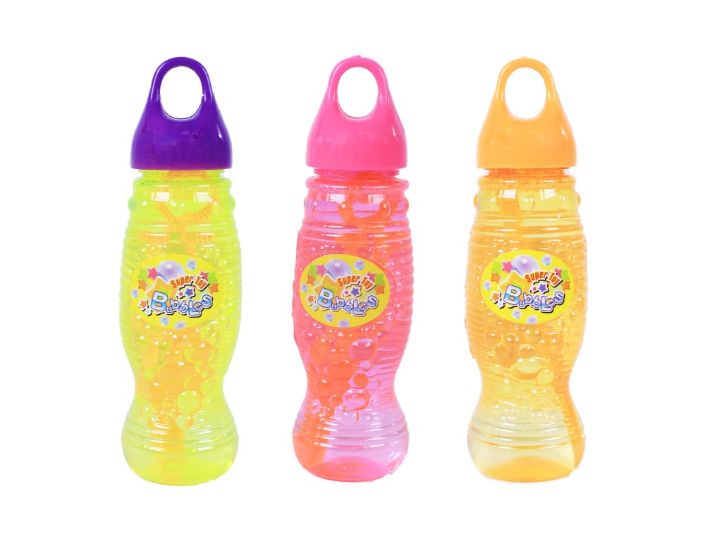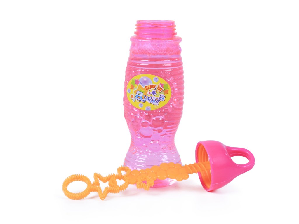Barevná lahvička s bublifukem má obsah 115 ml. Foukátko je součástí víčka. Nekonečná zábava se spostou bublinek, kdo udělá větší? Komu první praskne a která doletí dál?