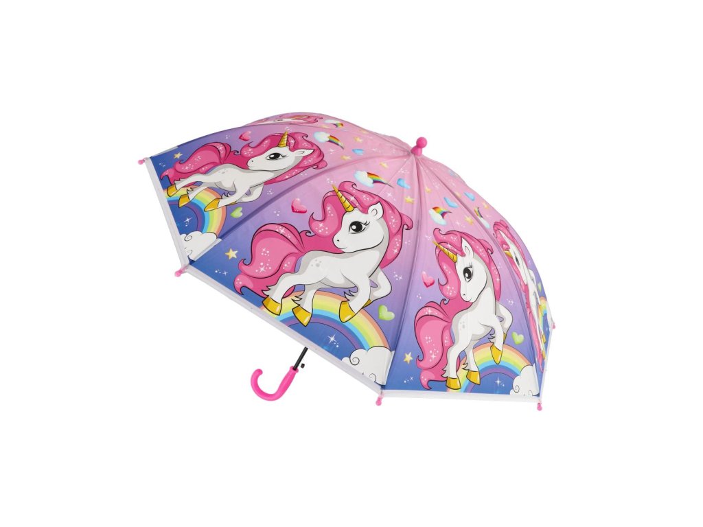 Deštník Jednorožec plast/kov vystřelovací 64cm v sáčku