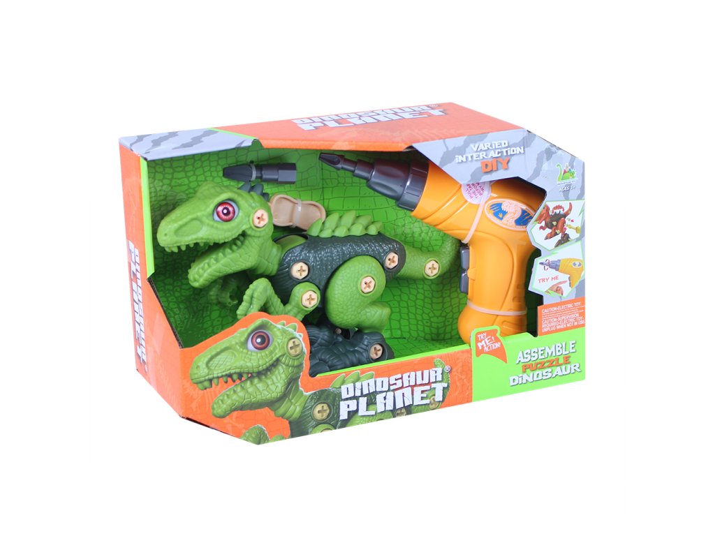 Šroubovací dinosaurus zelený s dětským Aku šroubovákem na baterie. Děti si mohou dinosaura sami rozložit a sestavit. Délka dinosaura je 20 cm. Šroubovák je na 2x1,5V AAA baterie, které jsou součástí balení.