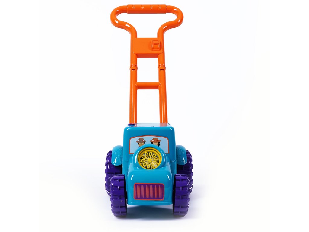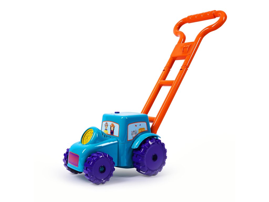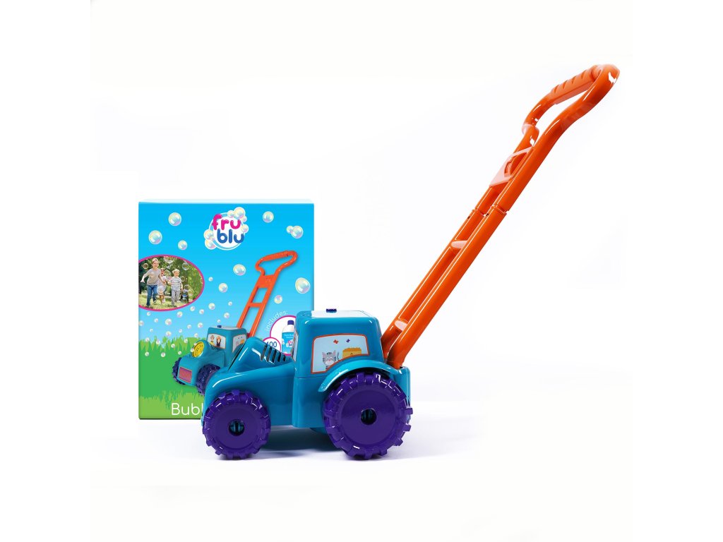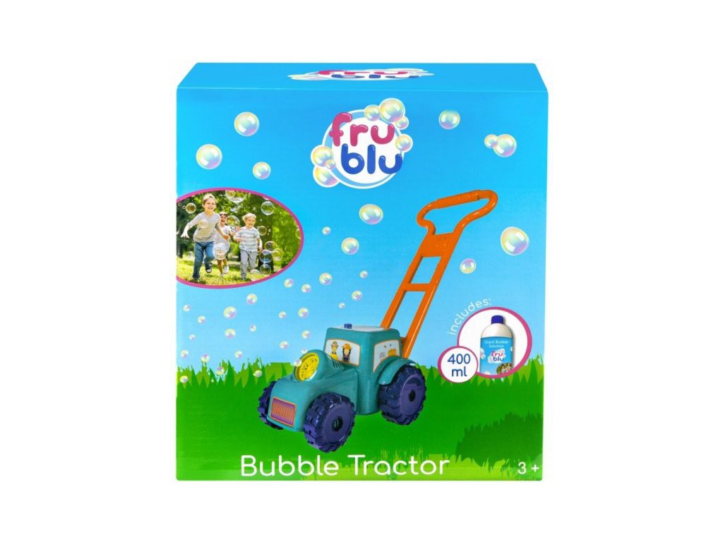FRU BLU TRAKTOR + tekutina 0,4L. Bublinový stroj v podobě traktoru vybízí dítě k tlačení, aktivuje jeho pohyb a poskytuje skvělou zábavu. Na rozdíl od podobných výrobků je traktor Fru Blu chráněn proti rozlití tekutiny při hře díky použití uzavřené láhve našroubované na výrobek. Hračka má také zabudované LED světlo, díky kterému je bublinkový efekt ještě atraktivnější. Spojte dobrou zábavu s kouzlem duhových bublin! Sada obsahuje traktorovou hračku a 0,4l láhev s tekutinou. Potřebné baterie: 3 x AA. Baterie nejsou součástí balení. Doporučený věk 3+.