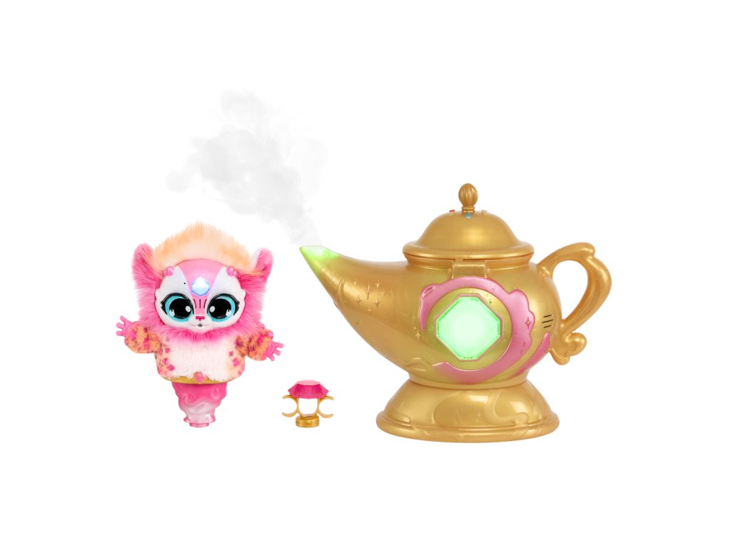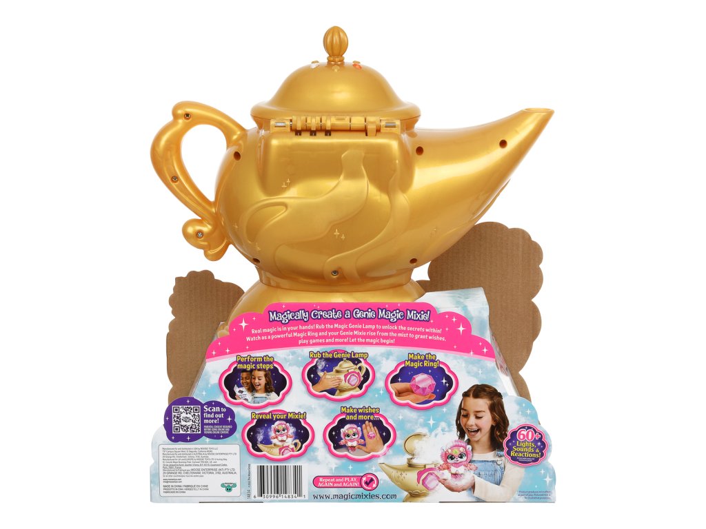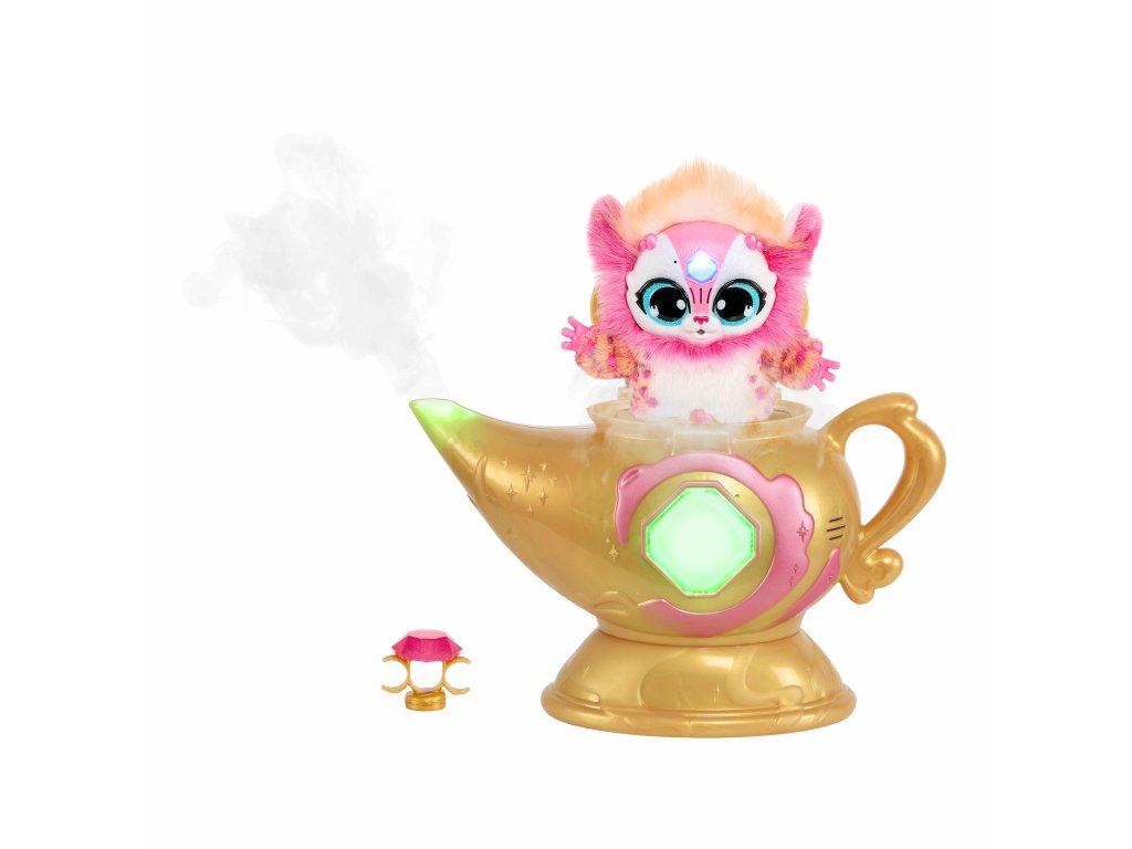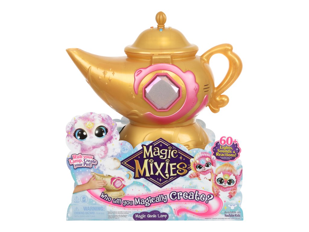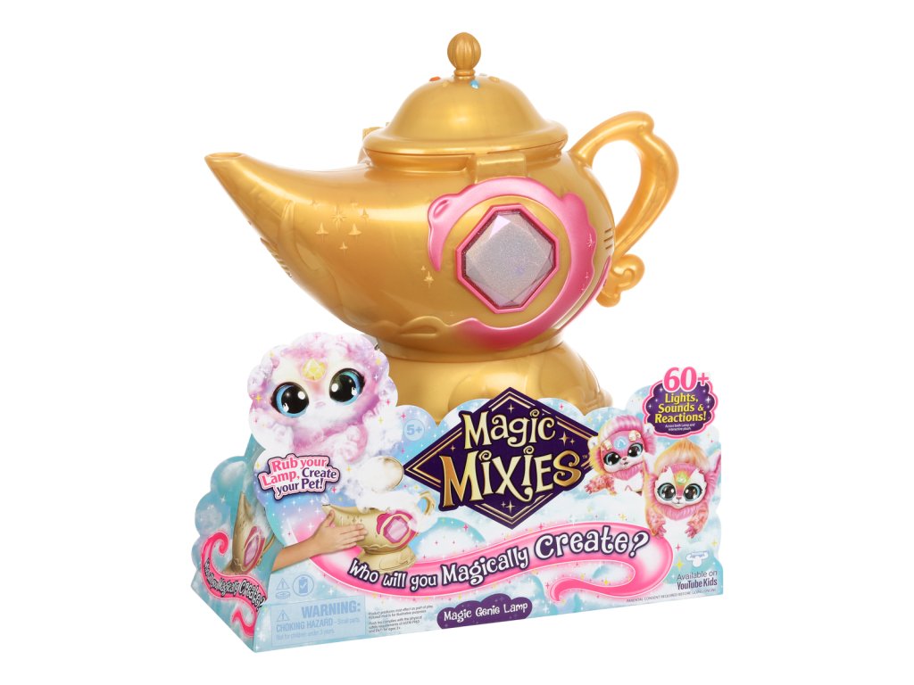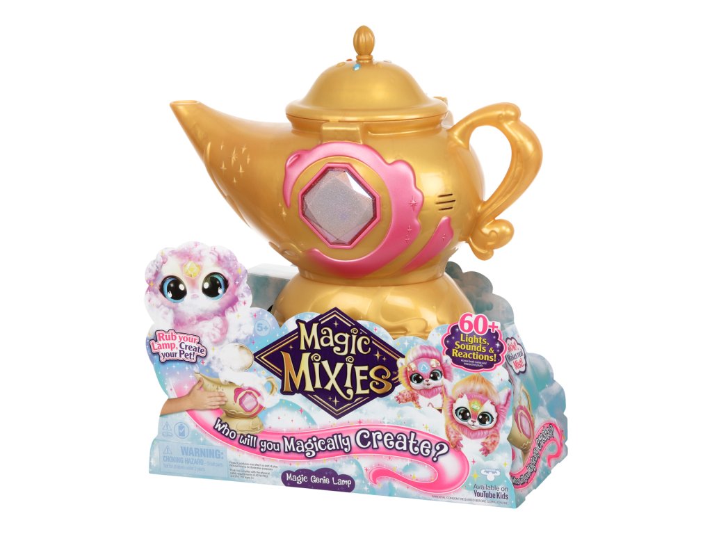 Skutečná kouzla se vrátila v podobě kouzelné lampy Magic Mixies! Uvnitř této tajemné zlaté kouzelné lampy se skrývá džin Mixie, který čeká na vypuštění! Je čas, aby vaše dítě provedlo kouzelné kroky a vytvořilo skutečné kouzlo z této funkcemi nabité kouzelné mlžící lampy s džinem s více než 60 různými světly, zvuky a reakcemi.Nejprve musí probudit džina a vytvořit kouzelný prsten, který je v něm ukrytý. Jakmile dítě lampu potře, začne z výlevky proudit skutečná kouzelná mlha a její drahokam se rozsvítí!Děti si zamilují interakci s hravým džinem Mixie, když budou objevovat a odkrývat tajemství lampy. Po splnění všech úkolů se modrý džin Mixie kouzelně vynoří z lampy! Vyjměte si roztomilého interaktivního plyšového džina!Kouzlo a zábava teprve začínají. Po vyjmutí džina Mixieho z lampy mohou děti použít kouzelný prsten a komunikovat se svým Mixiem. Jakmile dítě svého džina pojmenuje, může si hrát pomocí 3 různých režimů džina - režim plnění přání, režim hraní a režim povídání. Pomocí svítícího drahokamu na čele může džin Mixie plnit nebo zamítat dětská přání a mnoho dalšího! Balení obsahuje:• 1 x Hrací sada• 1 x Elektronická plyšová postavička• 1 x Příslušenství• 2 x Návody k použití• 6 x AA baterie• 3 x AG13 (LR44) baterie