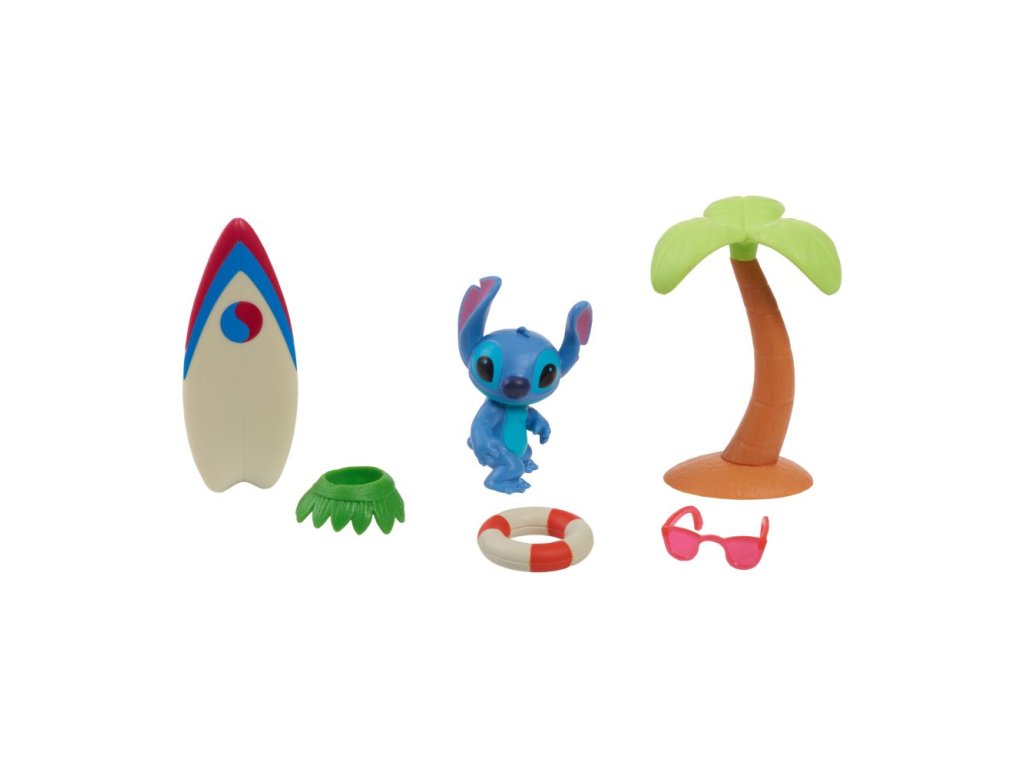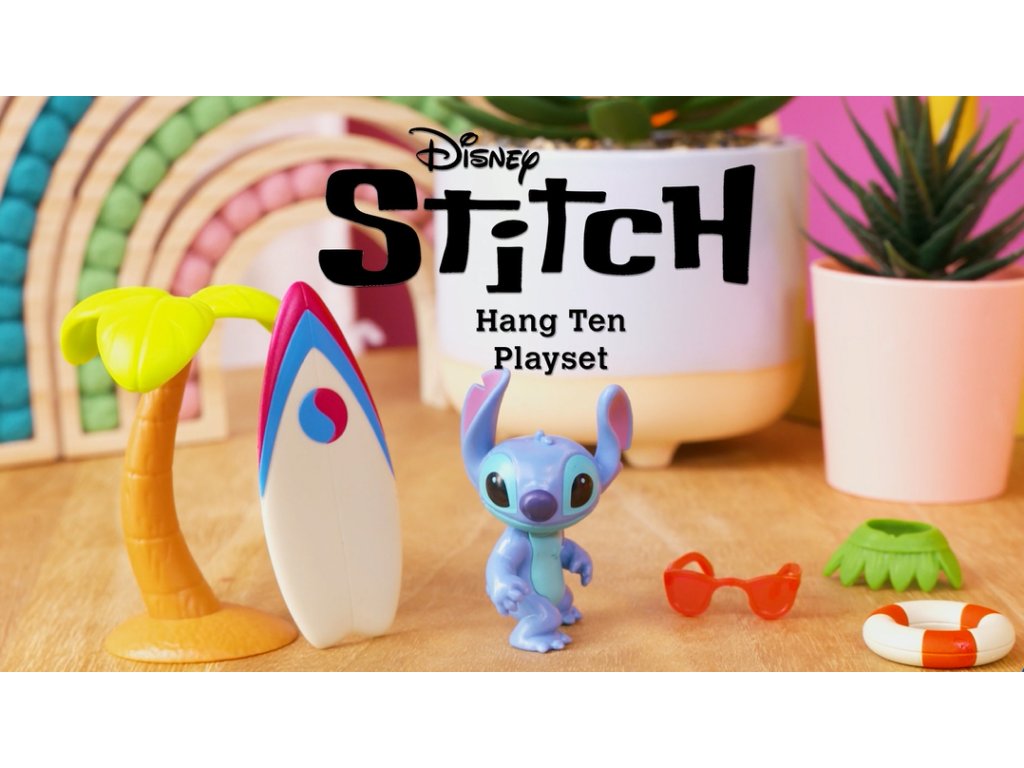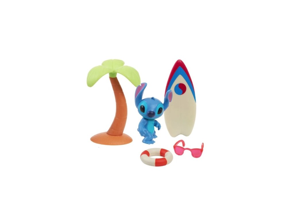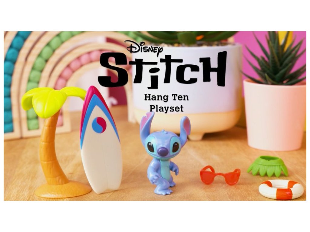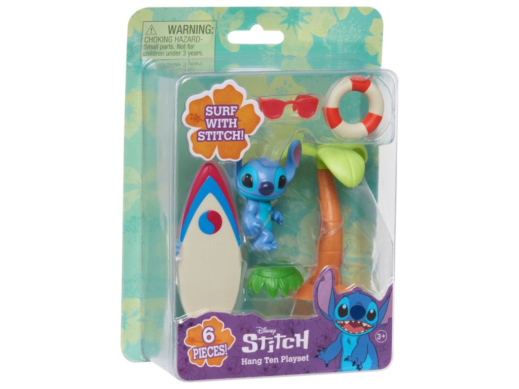 Hang Ten sada figurek Lilo a Stitche se skládá ze 6 dílků. Obsahuje figurky Stitche v plážovém oblečení, surfovací prkno a další 3 doplňky na hraní. Dětem se bude líbit oblékat Stitche do slunečních brýlí nebo do hula sukně. Vhodné pro děti od 3 let