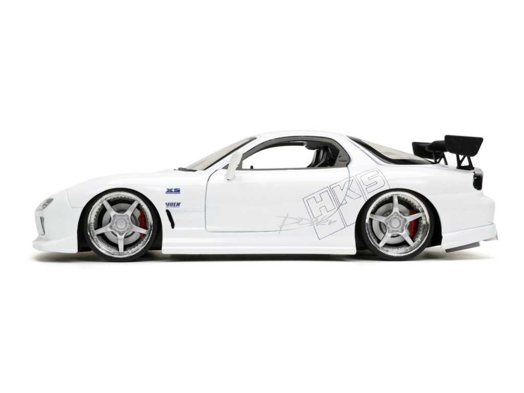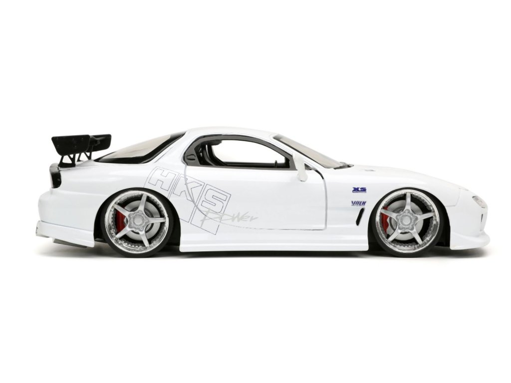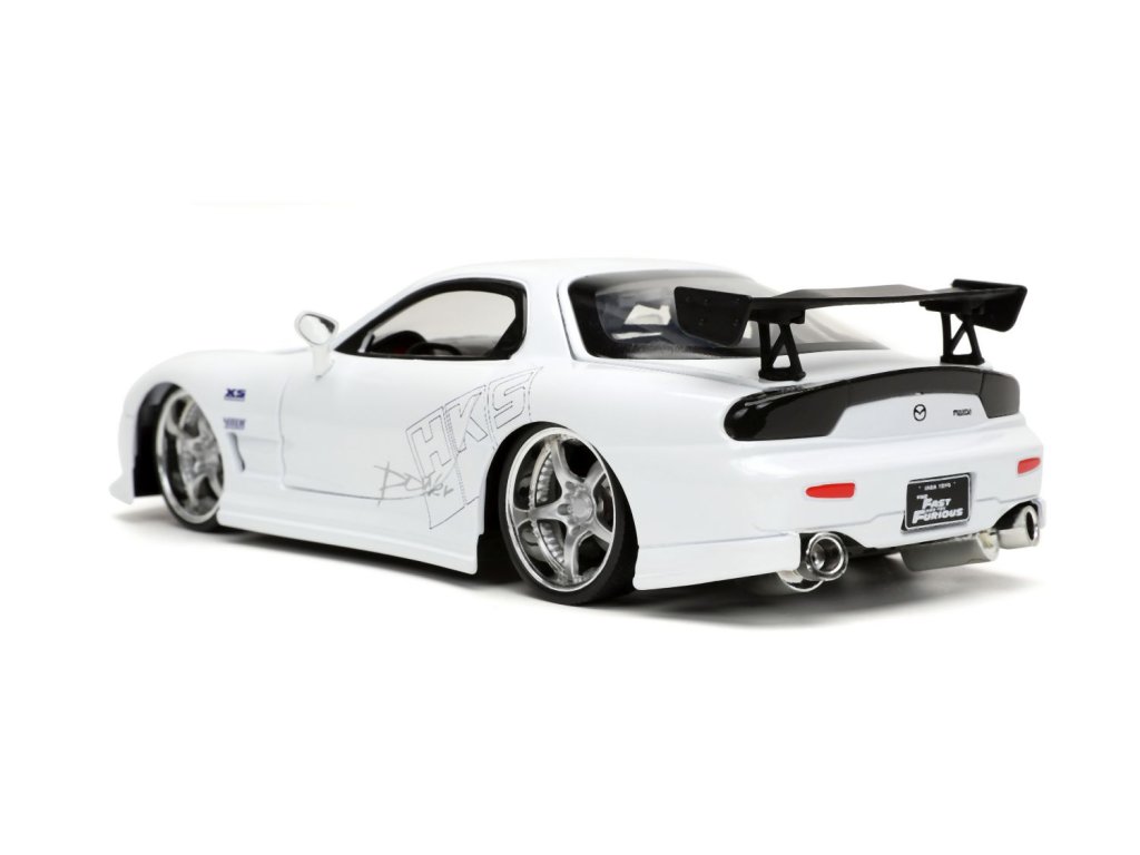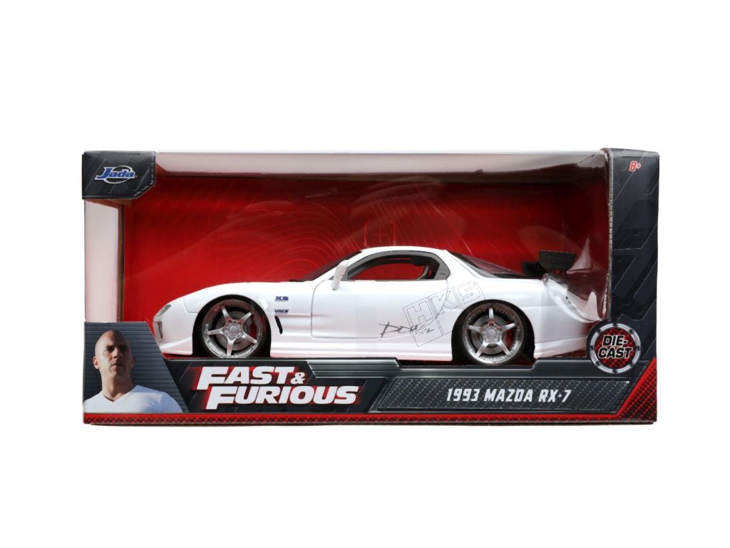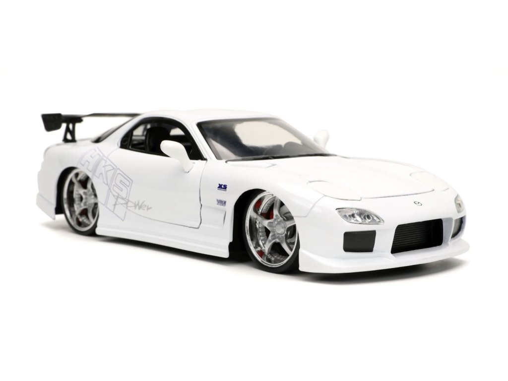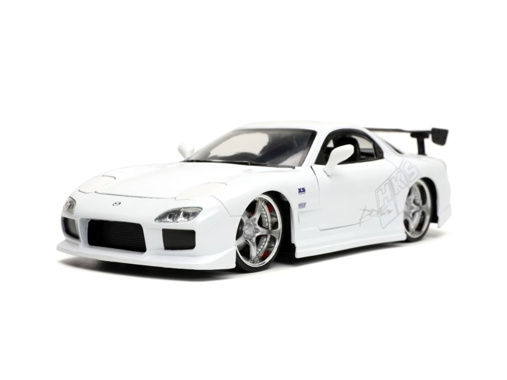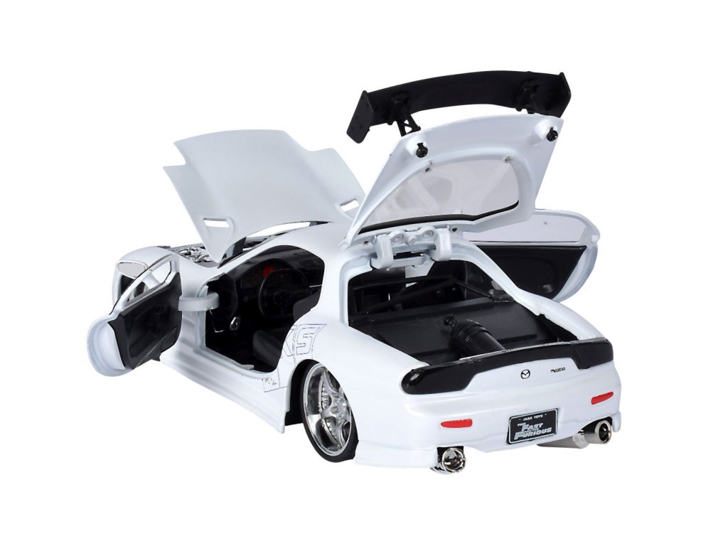 Kovový model auta Mazda RX-7 v měřítku 1:24 z filmu Rychle a zběsile. Na volnoběh, otevírací dveře, kufr a kapota. Velikost 20 cm.