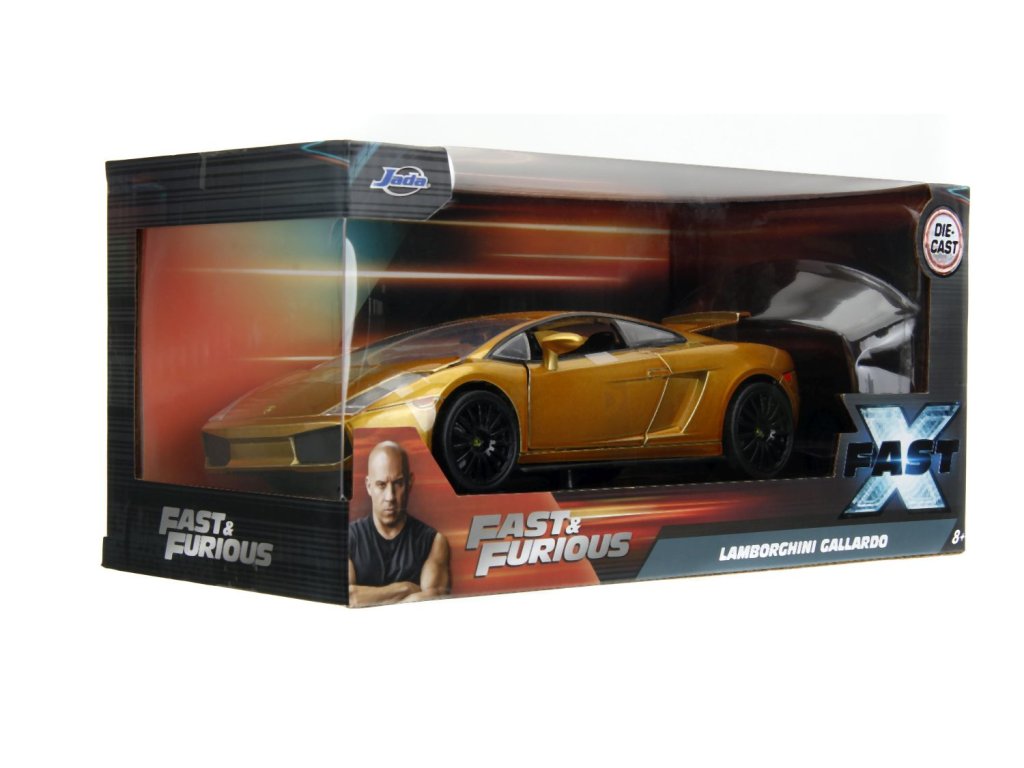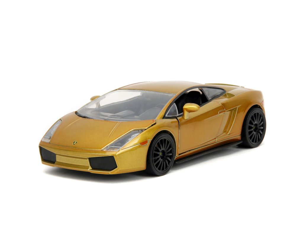 Kovový model auta z filmu Rychle a zběsile Lamborgini Gellardo v měřítku 1:24, otevírací části, volnoběh, barva zlatá.