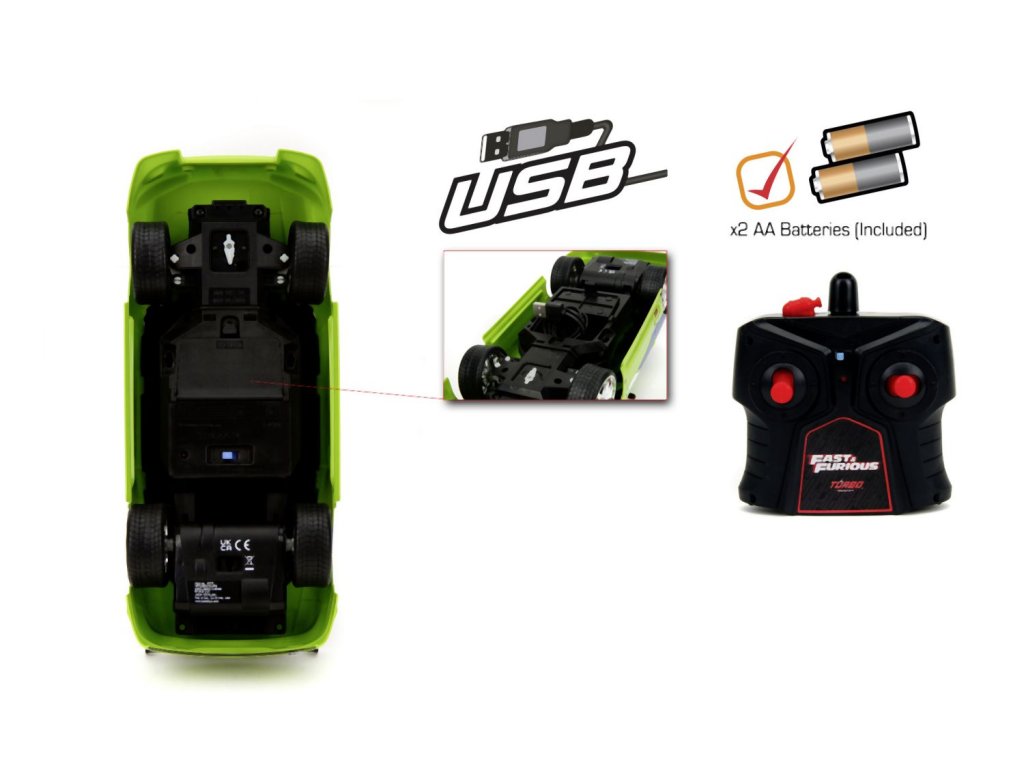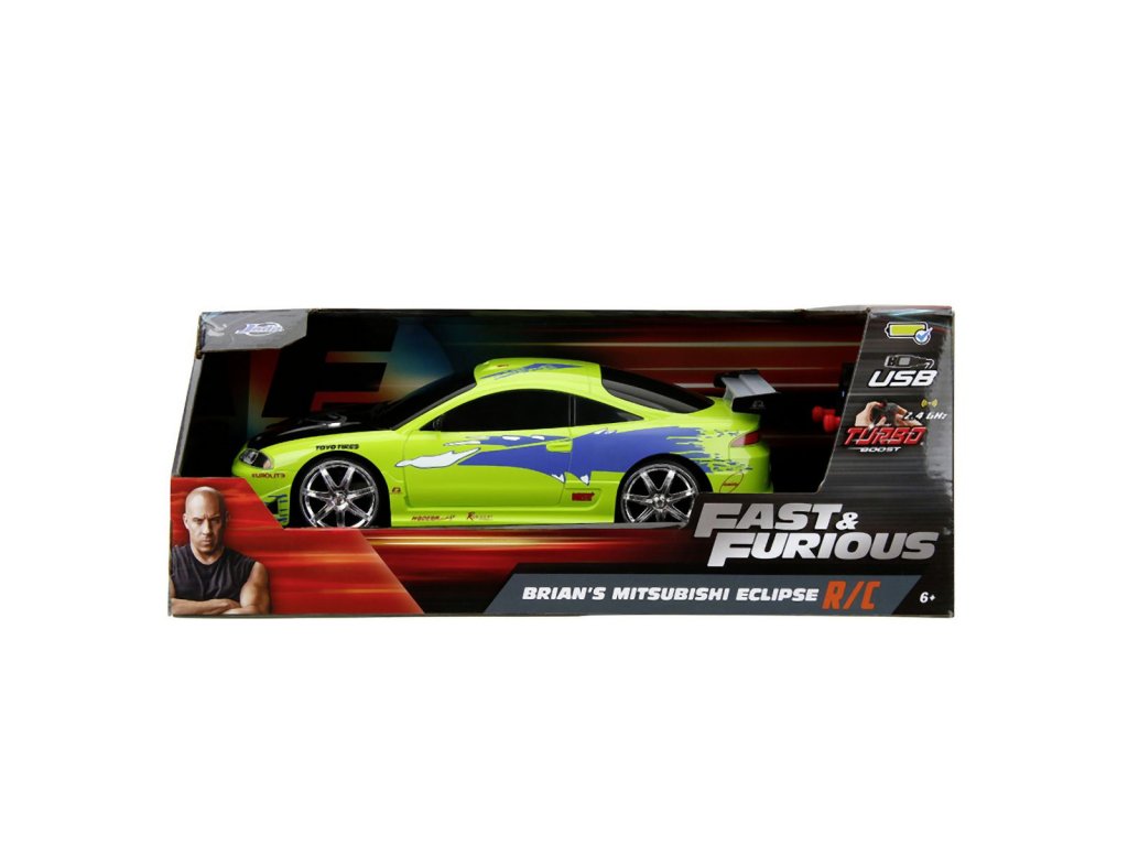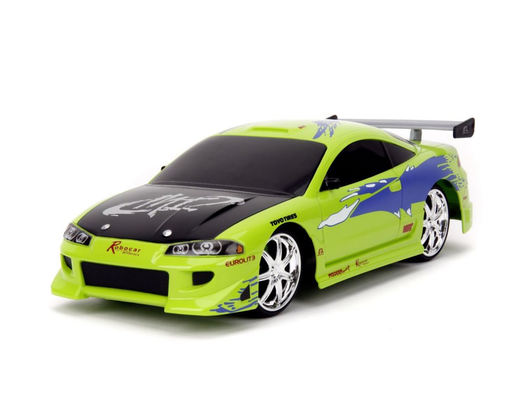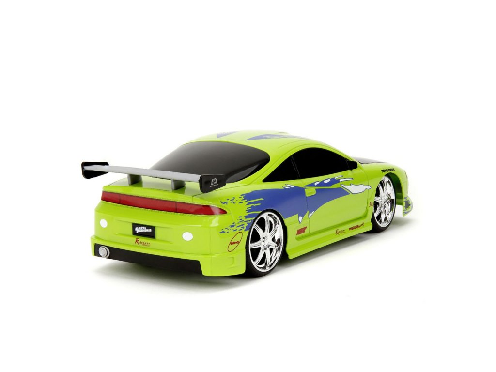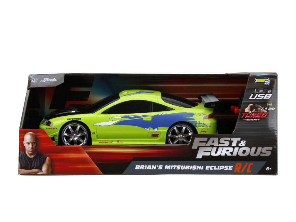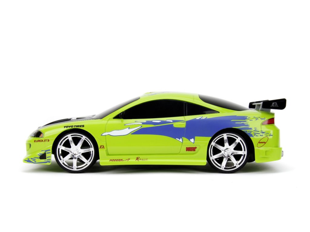 Auto 1995 Mitsubishi na dálkové ovládání z akčního filmu Rychle a zběsile. 2 kanály (jezdí vpřed, vzad, vlevo a vpravo). Frekvence 2,4 GHz. Turbo funkce. Barva zelená. Dobíjení prostřednictvím USB. V měřítku 1:16. Délka 28 cm.