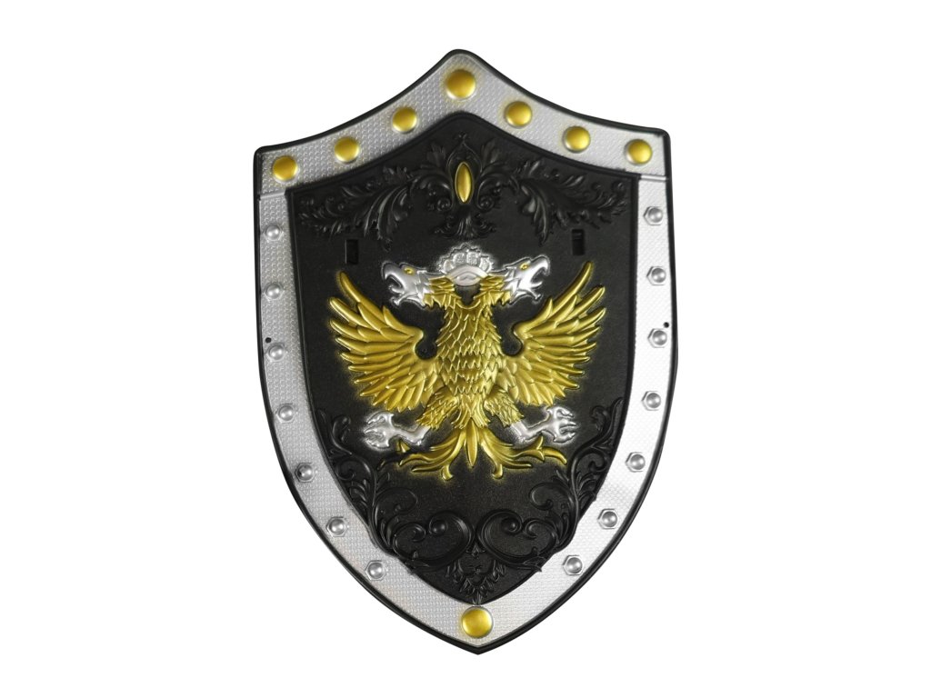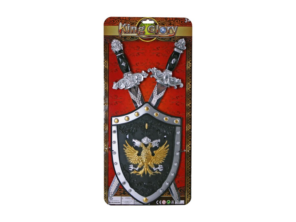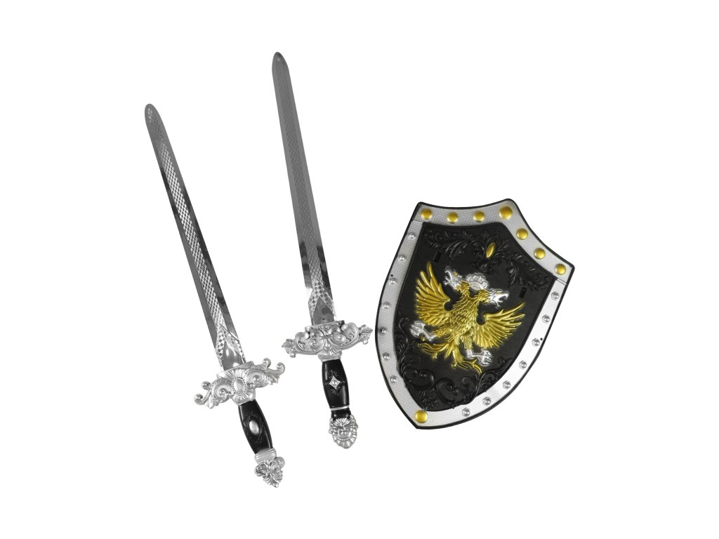 Nasaď si štít na ruku, uchop meč a hurá do rytířského boje! Set obsahuje 2 stříbrné meče v délce 49 cm a jeden zdobený štít s erbem.