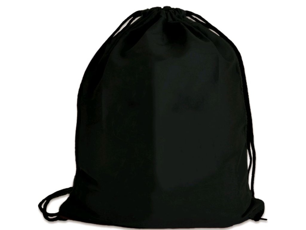 Černý pytlík se stahovacími šňůrkami a potiskem sovy Hedviky. Pytlík je vhodný například na trepky, sportovní potřeby nebo sportovní oblečení.