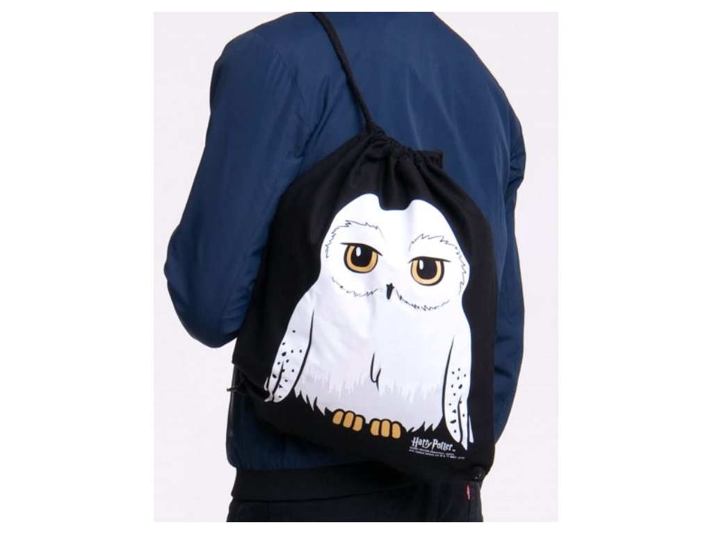 Batoh gym bag - vak se šňůrkami Harry Potter: Sova Hedwiga (35 x 44 cm) černá bavlna