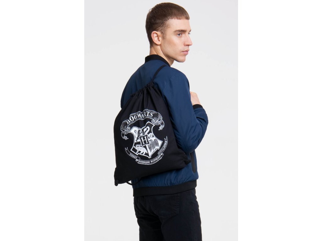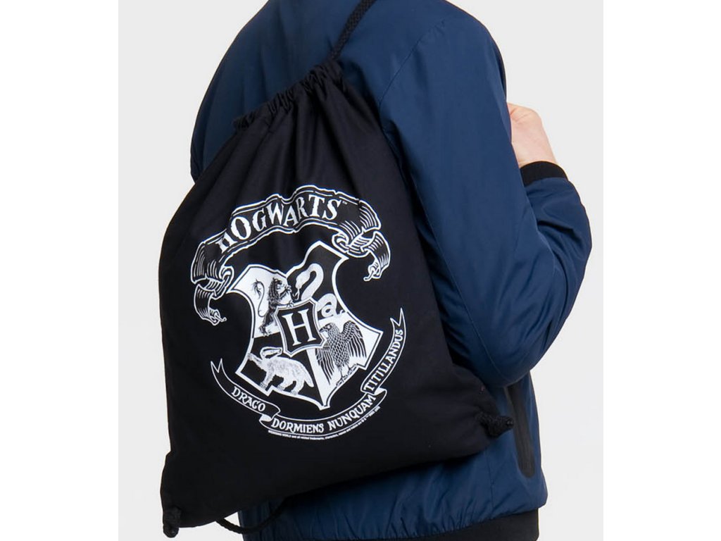Černý gym pytlík se znakem a nápisem kouzelné školy Hogwarts (Bradavice).