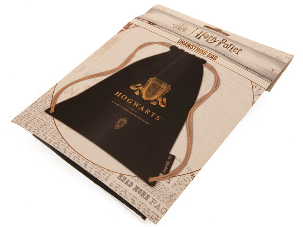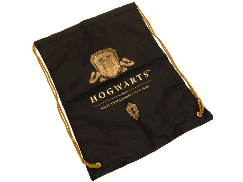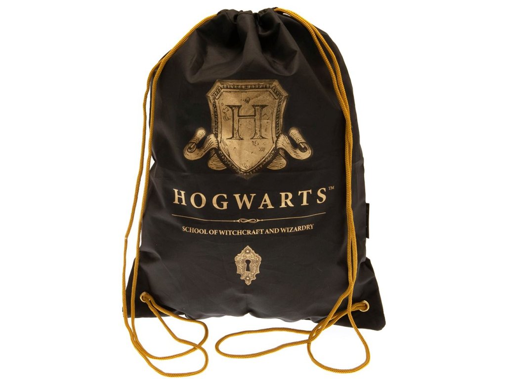 Černý pytlík se šňůrkami s motivem Hogwarts Shield z knižní a filmové ságy Harryho Pottera, je vhodný na trepky, sportovní potřeby nebo sportovní oblečení.