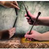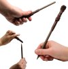 Hnědá propiska vyvedená jako hůlka z filmové ságy Harry Potter. Po sundání uzávěru můžete začít psát, inkoust je modrý.