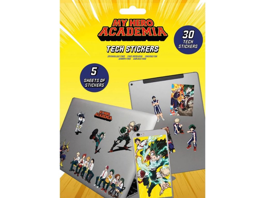 Oficiální produkt - samolepky na elektroniku z katalogu kreativních a dekoračních výrobků s grafikou, fotografiemi a licencí japonské šónen mangy My Hero Academia.