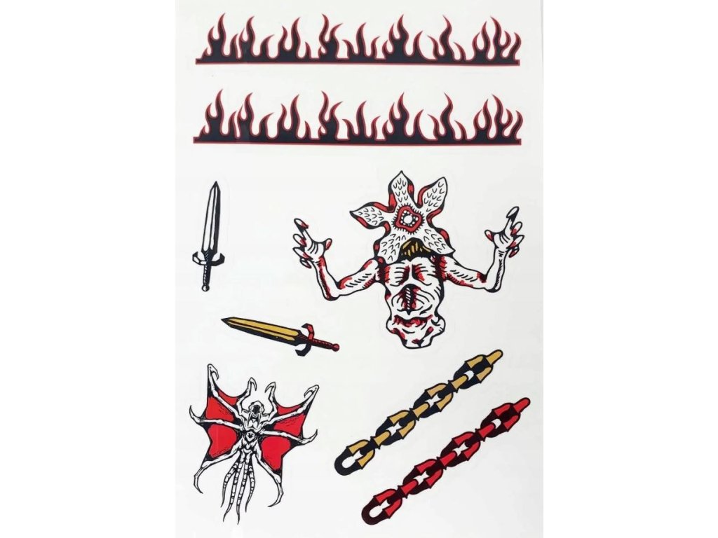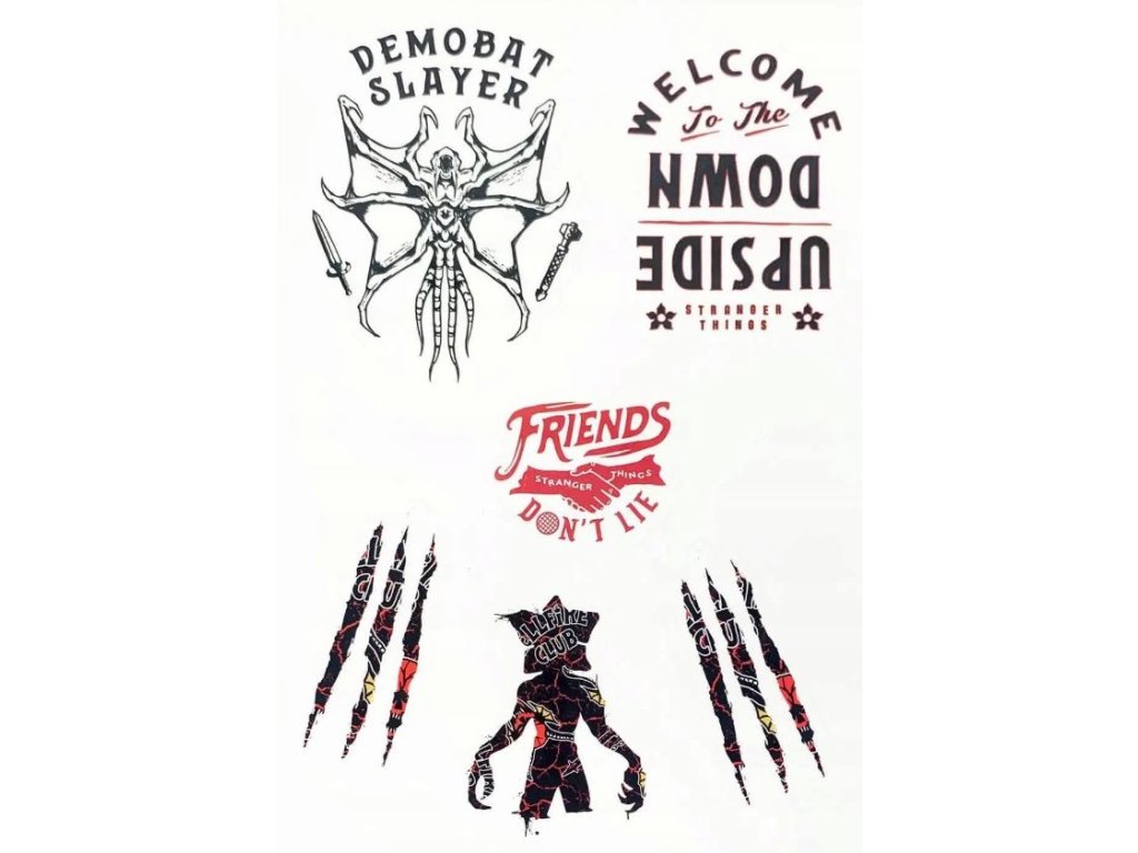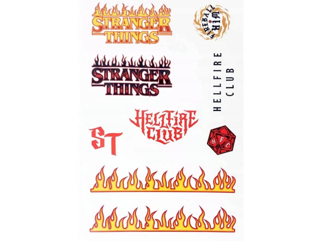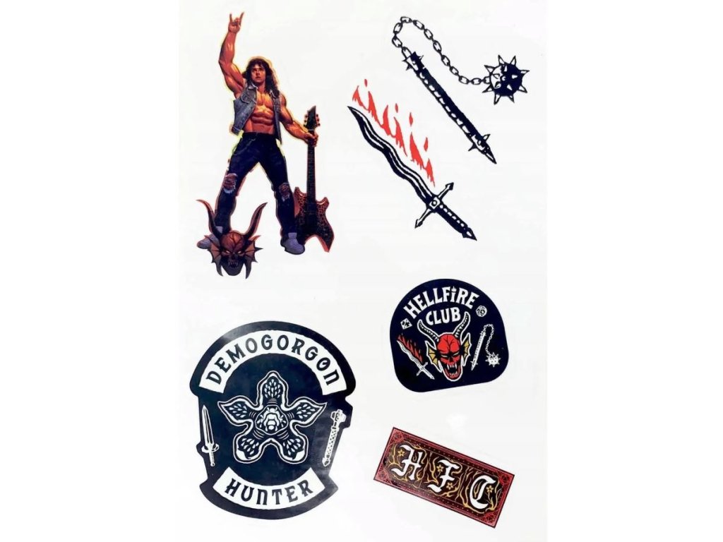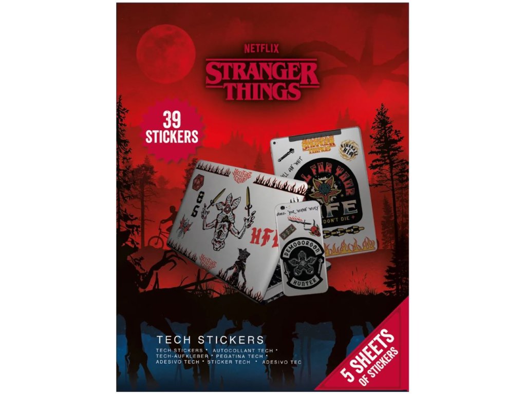 Sada samolepek na elektroniku inspirovaných seriálem Stranger Things. Skvělý způsob jak oživit tablety, notebooky a smartphony s vodotěsnými a odnímatelnými samolepkami různých velikostí a designů (od monster Demogorgonů, přes znak Hellfire Clubu, až po ohnivé logo seriálu). Samolepky jsou vhodným dárkem pro všechny menší i větší fanoušky seriálu Stranger Things.
