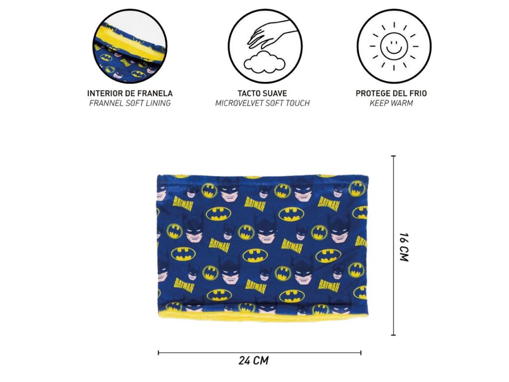 Oficiální produkt - dětský šátek na krk z katalogu zboží s grafikou a licencí populárního superhrdiny jménem Batman od komiksového vydavatelství DC Comics.