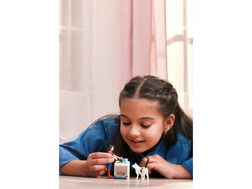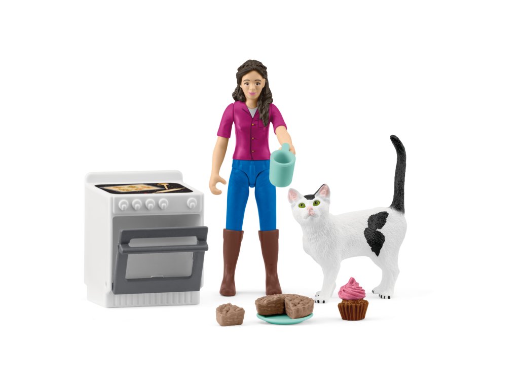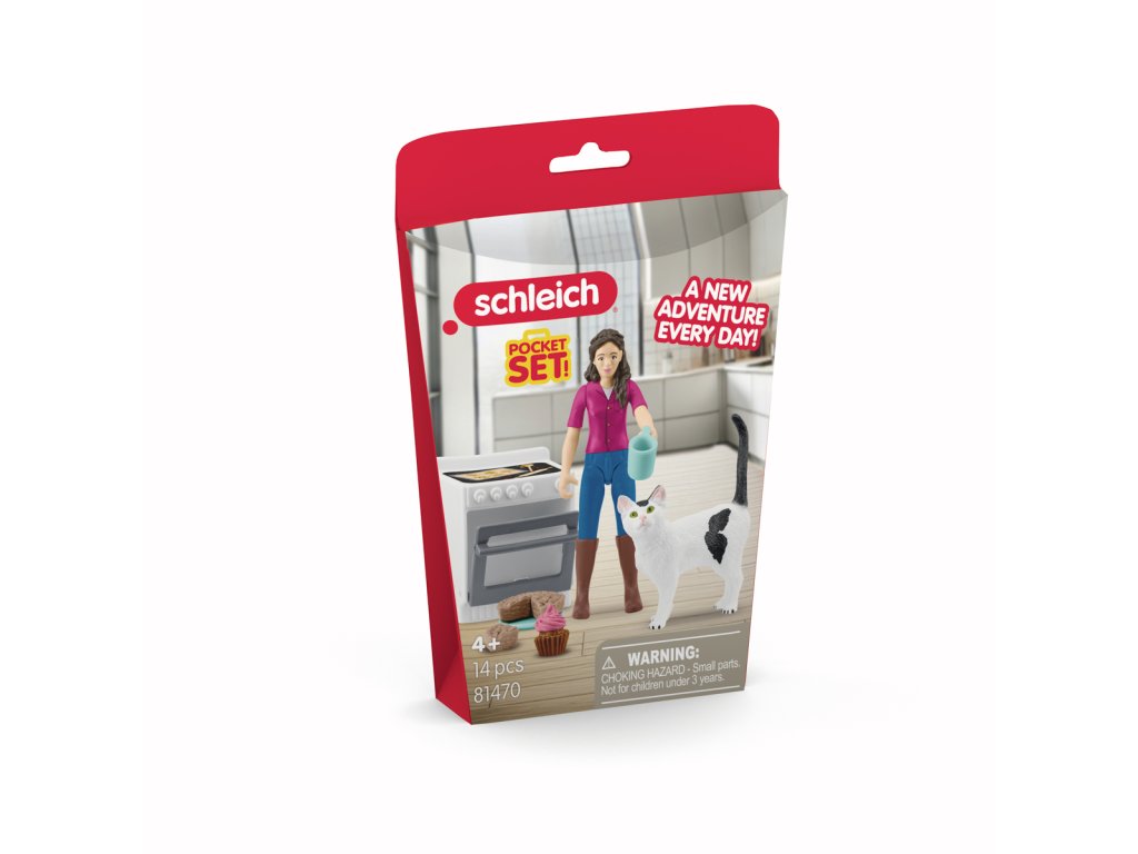 Co to tu tak krásně voní? Ach, Mrs. Kramer tráví odpoledne pečením! Stojí u trouby a vyndavá voňavé cupcakes, zatímco zvědavá kočka jí dělá společnost a pozorně sleduje každý její pohyb. Možná také něco dostane? Mrs. Kramer na to ale vůbec nemyslí – jablečný koláč je přece pro lidi. Na sporáku už je připraven plech se sušenkami. Pokud se kočka bude dívat dostatečně dlouho, Mrs. Kramer jí určitě podá i kočičí pochoutku. Mezitím si vezme šálek kávy, ukrojí si kousek koláče a pustí se do něj. Mňam! Obsah: 1x figurka Mrs. Kramer, 1x kočka, 1x trouba, 1x talíř, 1x kelímek, 4x jablečný koláč, 1x cupcake, 1x arch se samolepkami. Hrací sada mini figurek funguje samostatně, ale také bez problémů se všemi ostatními výrobky Schleich®. Hrací sada z kolekce POCKET SET je vhodná pro děti od 4 let. Figurky Schleich® podněcují fantazii a zaručují hodnotný herní zážitek plný dobrodružství. Rozměry balení: 19,8 x 13,8 x 5,8 cm. Nevhodné pro děti do 3 let. Věk: 4+