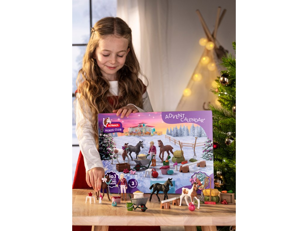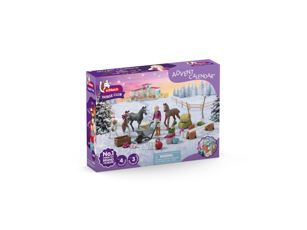 Adventní kalendář HORSE CLUB od Schleich® skrývá za každými dvířky překvapení, které milovníky koní nadchne. Vánoční zázrak – odchov hříběte ukrývá v každém okénku roztomilé vánoční překvapení. Velmi netrpělivě se očekává příchod tří hříbat, která jsou exkluzivně k dispozici v kalendáři. Vše, co Sarah na Lakeside potřebuje pro chov hříbat, najde v kalendáři: dudlík, ohlávku, pytel ovsa, seno, kolečko a mnoho dalšího. Kdo jí pomůže s prací? Adventní kalendář obsahuje tři hříbata (holštýnské, hannoverské, fríské), figurku Sarah s příslušenstvím pro krmení, péči a hru, včetně krmiva, nářadí, ozdob a překážek. Adventní kalendář Schleich® patří do tematického světa HORSE CLUB a je vhodná pro děti od 4 let. Rozměry kalendáře: 30 x 30 x 8,5 cm. Věk: 4+
