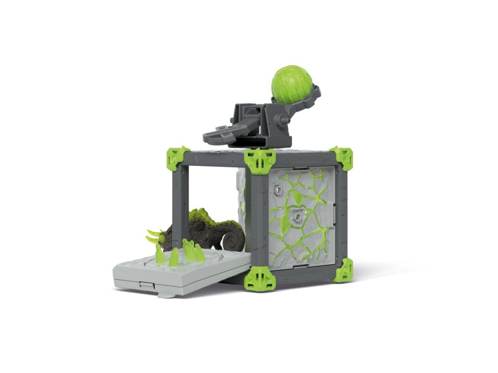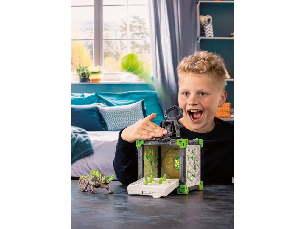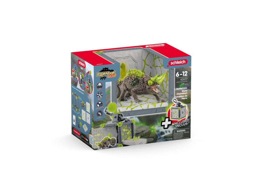 Kamenný chameleon změnil svou arénu BattleCave na skutečnou pevnost, aby v ní ochránil krystal světa před zloději. Díky svým velkým očím dokáže z dálky rozpoznat, že se k němu blíží útočník. Je čas uvést katapult na střeše do správné polohy a naložit munici. Raději se kryjte před velkou koulí! Chameleon umí docela dobře střílet a v případě potřeby může také připevnit katapult k boku arény BattleCave. Arény ELDRADOR® CREATURES BattleCave promění každý dětský pokoj v akční zónu! Kdo bude čelit dechberoucí bitvě? Všechny arény BattleCaves lze kombinovat. Na útočníky čekají děsivé tunely a záludné pasti. Ve velké aréně se pak mohou utkat v závěrečném souboji. To je ale boj! Rozměry modelu: 23 x 16,5 x 28,5 cm. Věk: 7-12