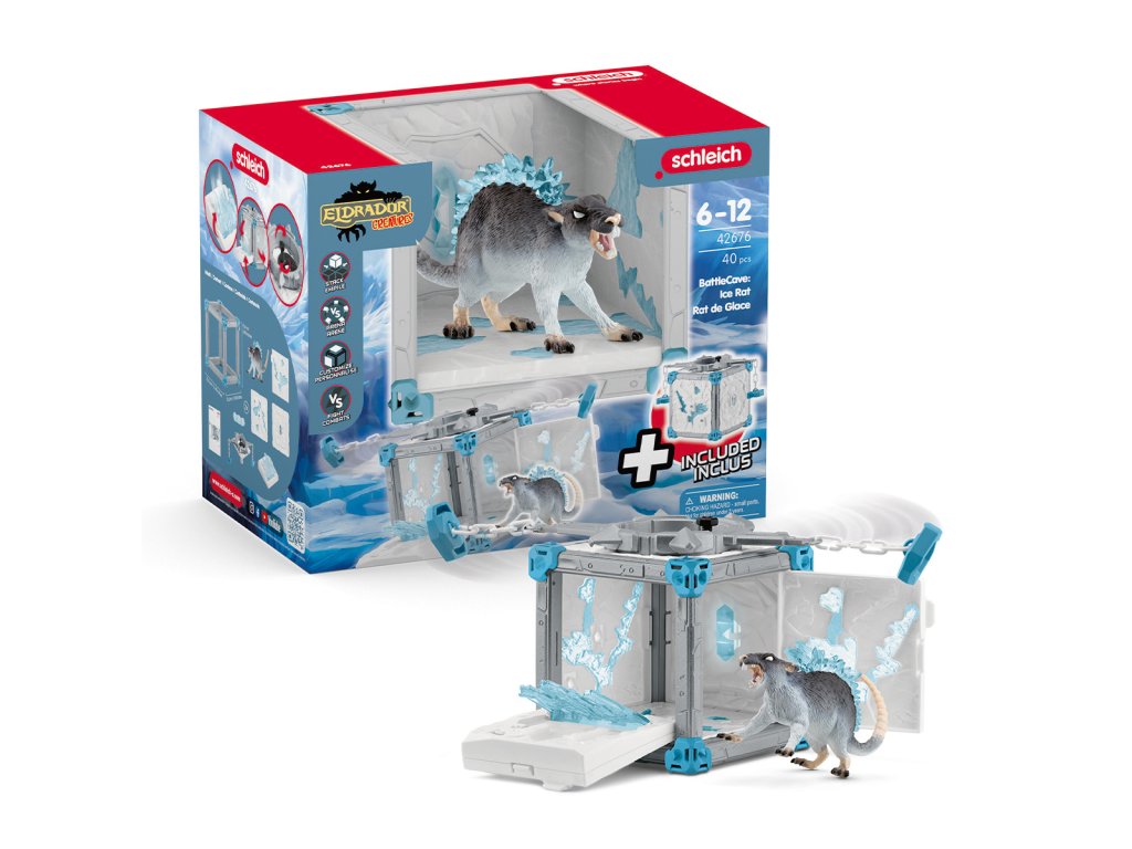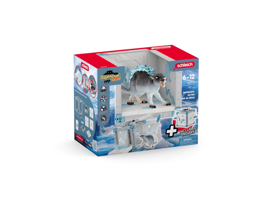 Ledová krysa vypadá vedle své arény BattleCave opravdu zle. Její pronikavé chladné oči pozorně sledují každého, kdo se chce pustit do boje a ukrást ledový krystal z arény BattleCave. Nad arénou BattleCave krouží na dlouhém řetězu nebezpečný ledový prak, který zasáhne každého, kdo se odváží přiblížit. Ale i když se ti podaří překážku překonat, ještě zdaleka není hotovo. Chceš-li získat ledový krystal, musíš jít do arény BattleCave. Čeká tam však past: V mžiku se objeví ostré ledové rampouchy, které brání v přístupu. Podaří se někomu ledovou krysu porazit? Arény ELDRADOR® CREATURES BattleCave promění každý dětský pokoj v akční zónu! Kdo bude čelit dechberoucí bitvě? Všechny arény BattleCaves lze kombinovat. Na útočníky čekají děsivé tunely a záludné pasti. Ve velké aréně se pak mohou utkat v závěrečném souboji. To je ale boj! Rozměry modelu: 23 x 16,5 x 28,5 cm. Věk: 7-12