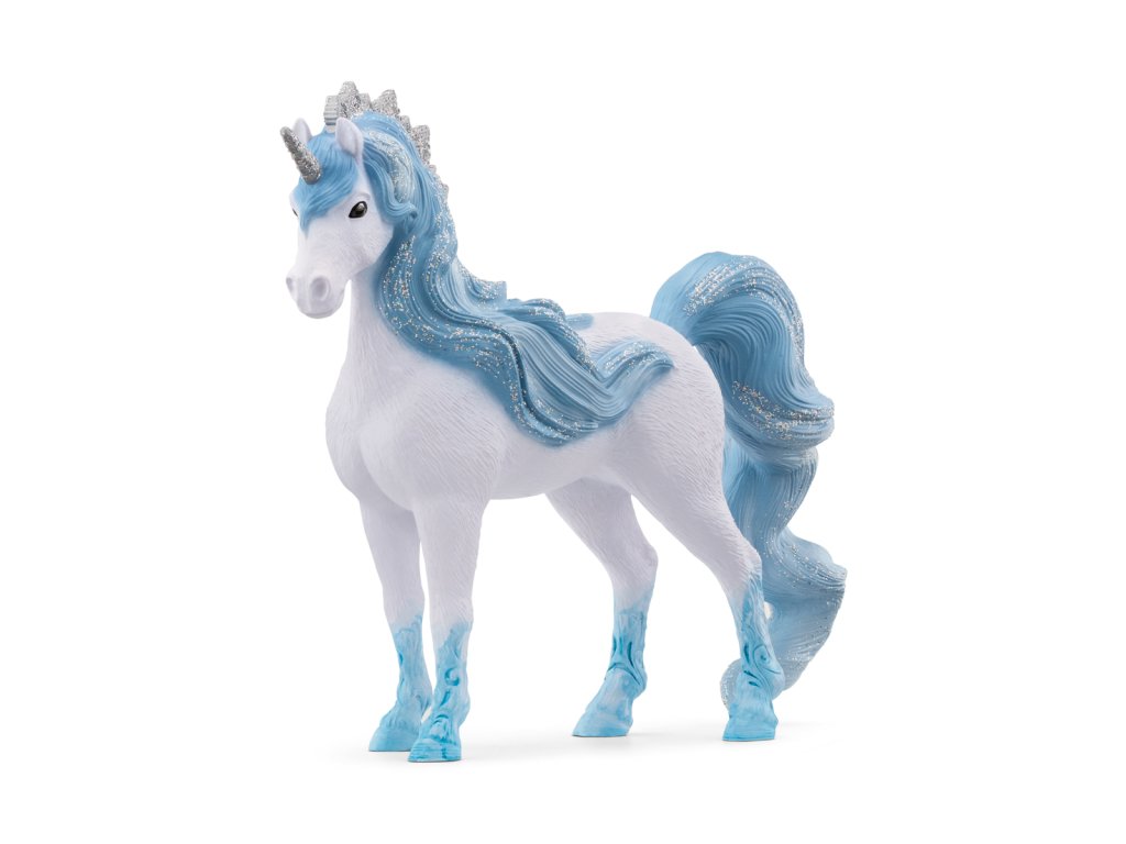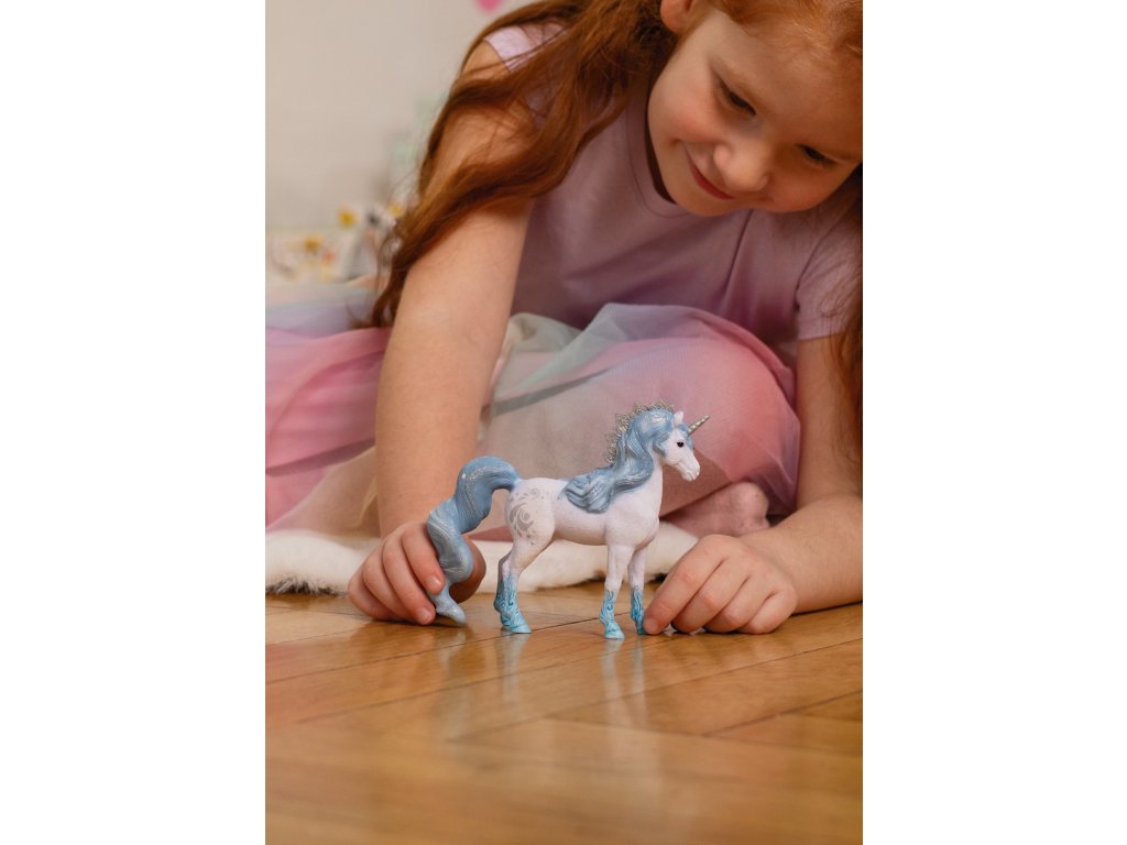 Když klisna jednorožce Flowy klusá po louce, všichni se za ní otáčejí. Vypadá nádherně. Její splývavý modrý ocas vypadá jako vodopád a bujná třpytivá hříva se jí elegantně vine po hřbetě. Všechno na tomto nádherném jednorožci připomíná vodu. Možná právě proto je tahle krásná klisna dokonalým symbolem vodní energie? Vždycky bude ráda bránit svět BAYALA®, který je šetrný ke klimatu. Velikost: 14,4x11,7x4cm. Věk: 3+