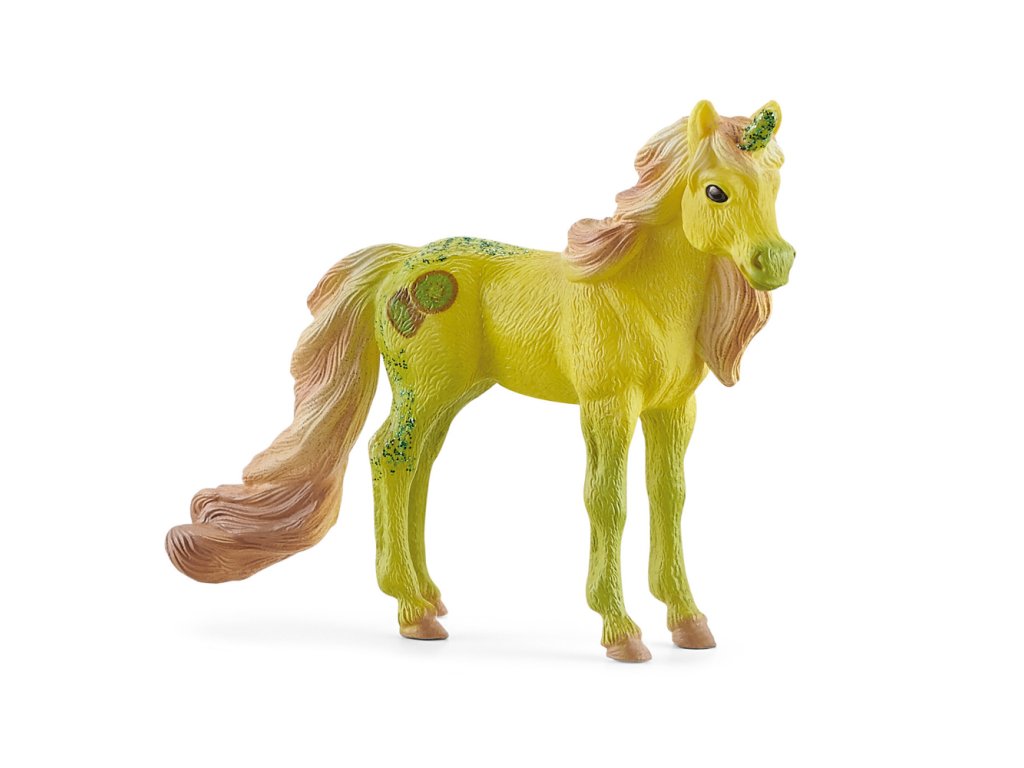 Jednorožec Kiwi je roztomilé hříbě ze Schleich® Bayala®. Ji i dalších 11 hříbat s téhož stáda nazývají víly, draci a další obyvatelé Bayala láskyplně ´´kvítka´´. Jednorožec vděčí za svůj vzhled tomu ovoci, které snědl jako první – v případě Kiwi to bylo kiwi. Takto přišel jednorožec ke svému roztomilému jménu a tetování. Kiwi je nejen chytrá, ale také mimořádně nápaditá. Kdekoli je problém, najde tento malý jednorožec řešení. Toho si ostatní na Kiwi váží. Sada obsahuje: 1x hříbě jednorožce, 1x plakát. Figurky Schleich jsou mimořádně detailní, láskyplně malované a umožňují dětem hrát si a zároveň se učit. Rozměr balení: 12,5 x 16 x 2,5 cm. Nevhodné pro děti do 3 let. Doporučený věk: 5-12.