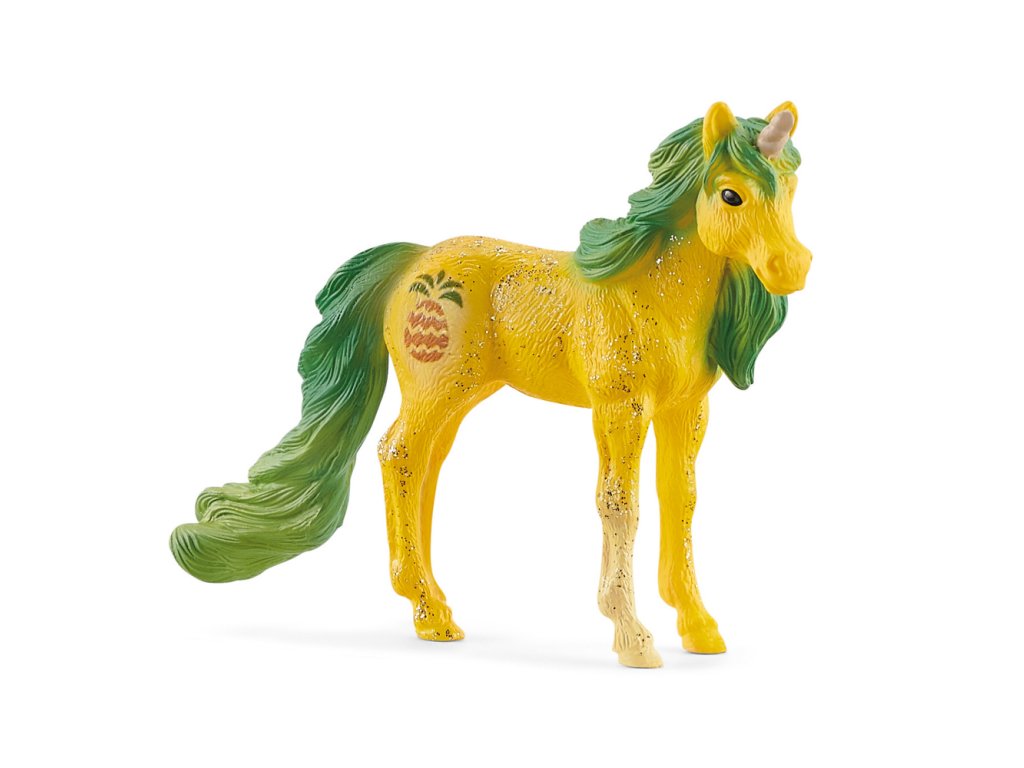 Jednorožec Pineapple je roztomilé hříbě ze Schleich® Bayala®. Jeho i dalších 11 hříbat s téhož stáda nazývají víly, draci a další obyvatelé Bayala láskyplně ´´kvítka´´. Jednorožec vděčí za svůj vzhled tomu ovoci, které snědl jako první – v případě Pineapple to byl ananas. Takto přišel jednorožec ke svému roztomilému jménu a tetování. Pineapple je od přírody tak roztomilý, nekomplikovaný a otevřený a každý chce být jeho přítel. Stručně řečeno, Pineapple je tu pro všechny. Sada obsahuje: 1x hříbě jednorožce, 1x plakát. Figurky Schleich jsou mimořádně detailní, láskyplně malované a umožňují dětem hrát si a zároveň se učit. Rozměr balení: 12,5 x 16 x 2,5 cm. Nevhodné pro děti do 3 let. Doporučený věk: 5-12.