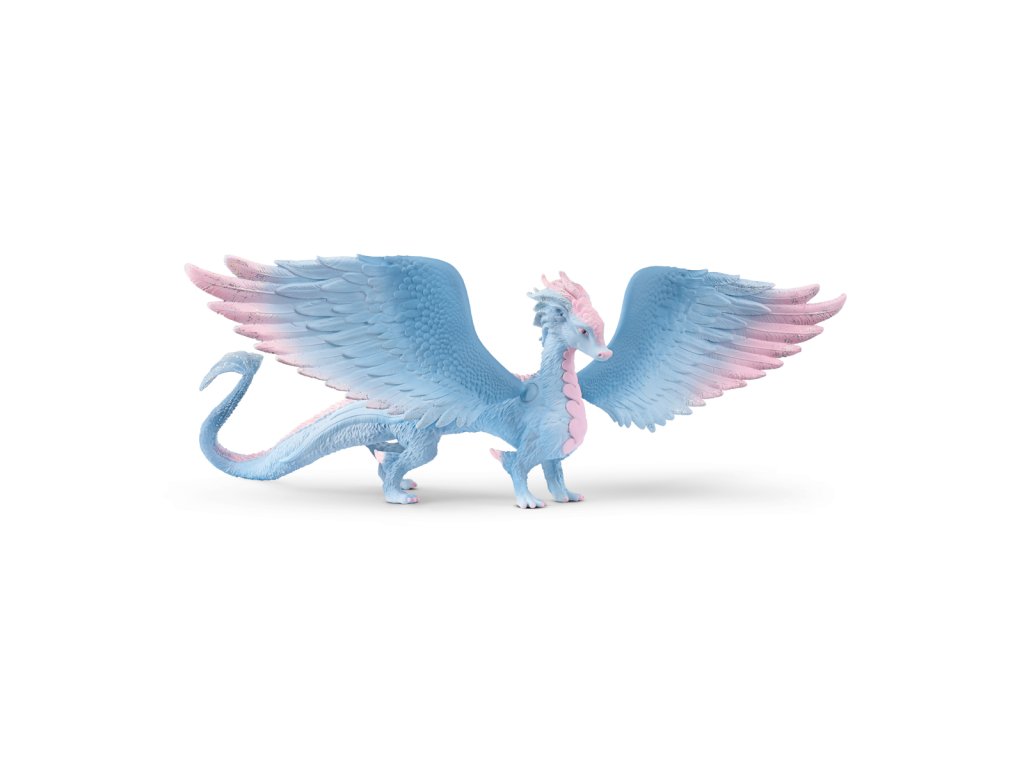 Křišťálový drak se pyšní nádhernými jasnými pastelovými barvami. Nejenže jeho vzhled velmi připomíná překrásné barvy křišťálu, ale sám má také působivou sbírku křišťálů, kterou si pečlivě střeží. Ze všech svých krystalů má křišťálový drak nejraději růženín. Ve vzduchu je slyšet bzučení: Křišťálový drak letí plnou rychlostí po obloze světa BAYALA®. Přitiskne křídla ke svému štíhlému tělu, aby letěl rychleji. Vypadá jako modrá šipka. Kam to tak spěchá? Křišťálový drak však umí i zpomalit: Za klidných dnů roztáhne svá elegantní křídla a nechá se unášet horkými proudy. Pak je vidět už z dálky a přitahuje obdivné pohledy. Vypadá báječně! Páni, křišťálový drak vypadá impozantně, když roztáhne mohutná modrá křídla s růžovým nádechem. Jeho dlouhé tělo je zakončeno mohutným ještěřím ocasem a na hrudi má silné růžové šupiny. Když se vznáší ve vzduchu, zůstávají za ním větrné stopy. Tento výrobek Schleich® patří do tematického světa BAYALA® a je vhodný pro děti ve věku od 5 do 12 let. Rozměry figurky: 14,9 x 31,9 x 25,3 cm.