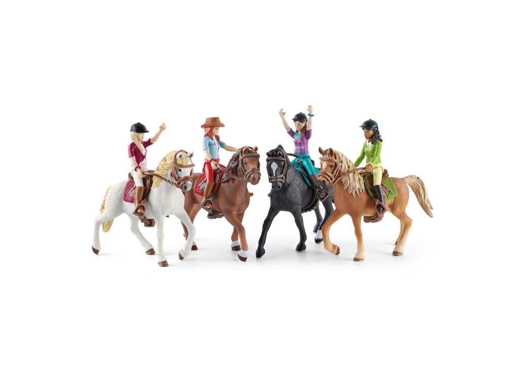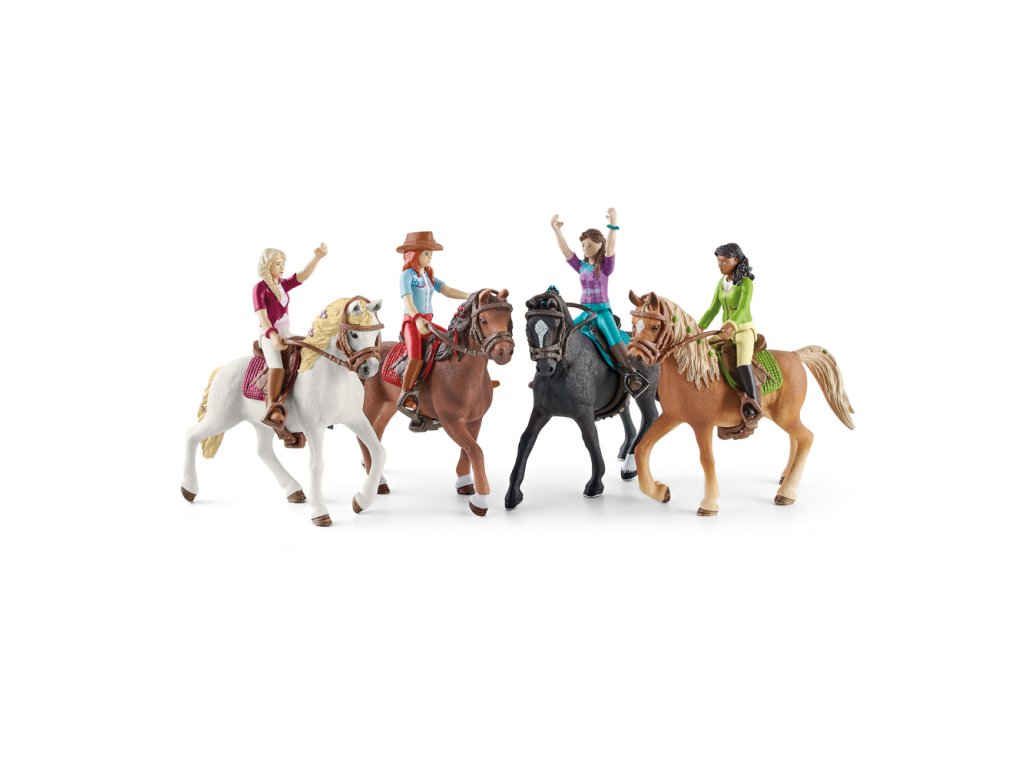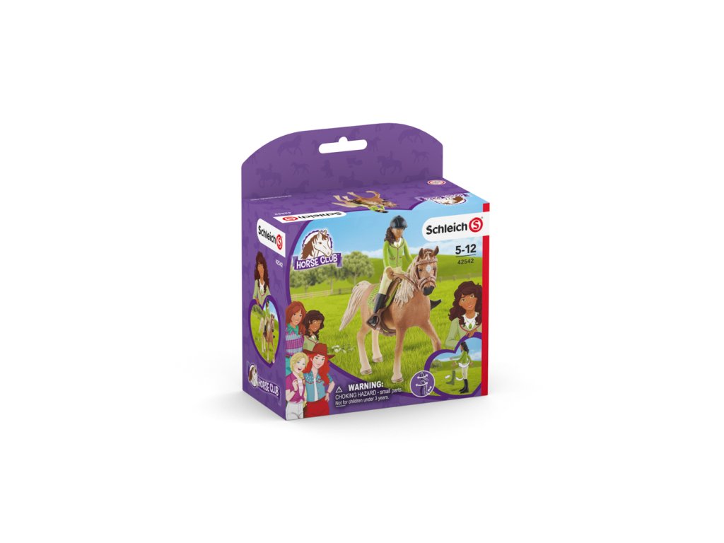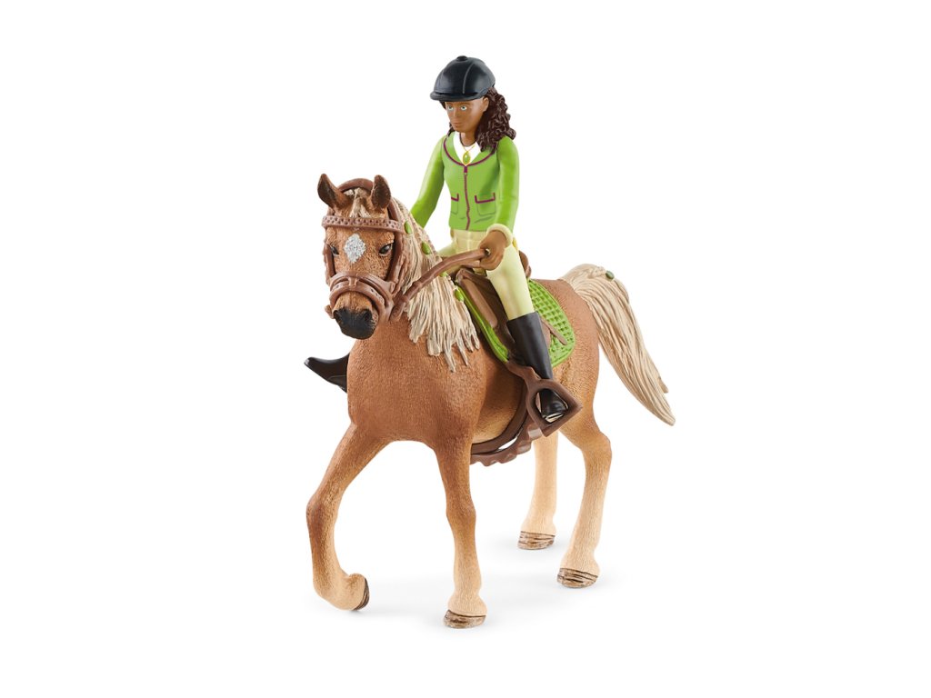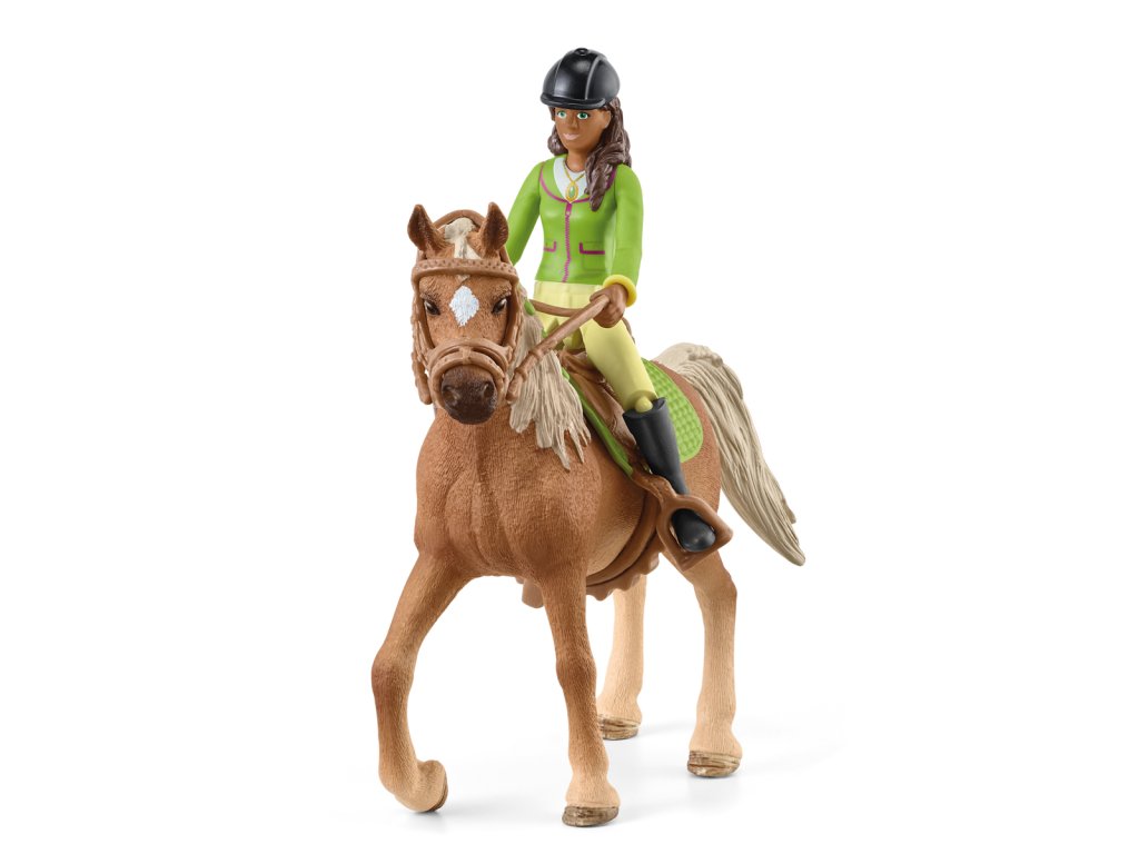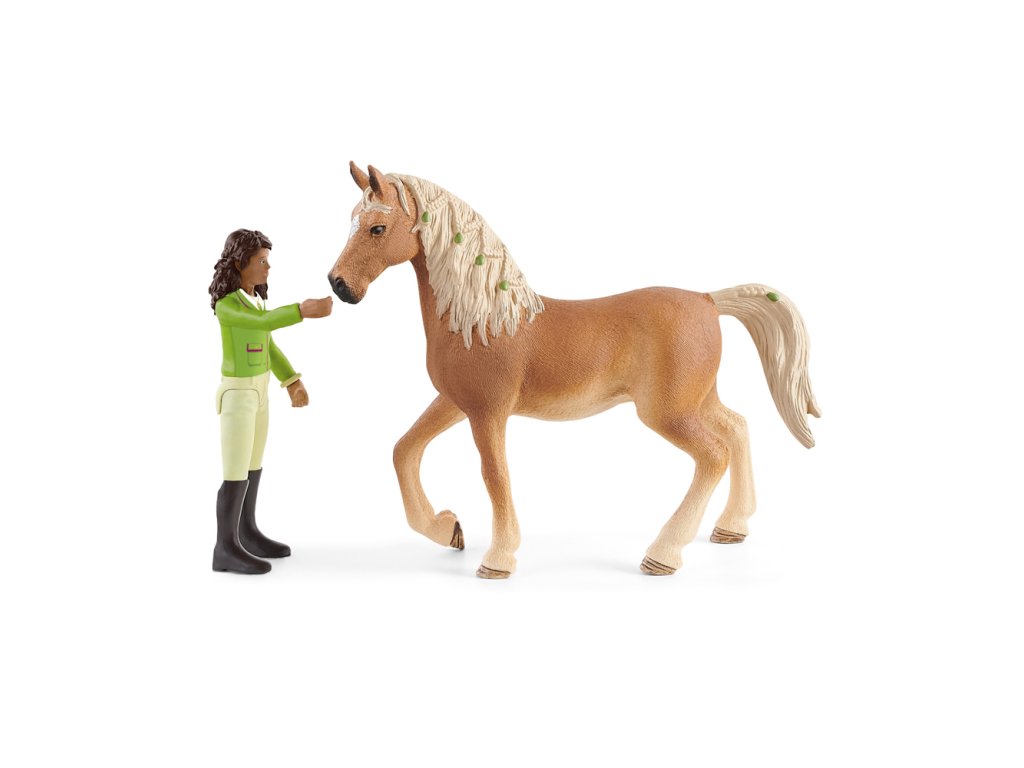 Černovláska Sarah & Mystery od Schleich® z Horse Club jsou nerozlučné. Když Sarah a její arabská klisna cválají po polích, brodí se potoky nebo se toulají lesem, splyne jejich srdce v jedno. Figurka Sarah nosí jezdeckou helmu, je plně pohyblivá a dokáže svému koni nasadit uzdu, otěže i sedlo. Figurka Sarah umí stát i sedět v sedle. Žlutý náramek na její paži ukazuje, že je členkou Horse Clubu. Sada obsahuje: 1x figurka Sarah (s pohyblivými klouby), 1x kůň, 1x jezdecká přilba, 1x sedlo, 1x uzda s otěží, 1x náramek na ruku. Figurky Schleich jsou mimořádně detailní, láskyplně malované a umožňují dětem hrát si a zároveň se učit. Nevhodné pro děti do 3 let. Rozměr balení: 15 x 18 x 8,2 cm. Doporučený věk: 5-12.