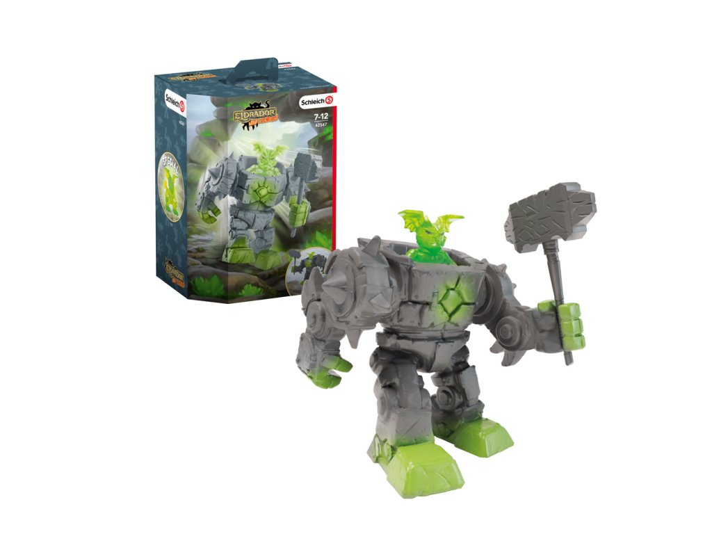 Bez ohledu na to, jak tvrdí jsou odpůrci kamenného Robota Eldrador Mini Creatures od Schleich® Eldrador®, on je tvrdší! Obr byl stvořen Mini tvory, aby po několika zničujících bitvách znovu vybudoval Kamenný svět. Pohyblivými pažemi a mocným kamenným kladivem roztříští balvany, které leží kolem, odhází suť z cesty a vytesá chladné jeskyně. Mini tvorové jdou do společného boje a Kamenný Robot jde s nimi! Robot je ovládán pánem kamenů, vůdcem Mini tvorů v Kamenném světě. Malý, divoký tvor je stvořen ze super tvrdých krystalů. Jakmile se usadí do Kamenného Robota, stačí jedna rána jeho kladivem a promění bublající lávový svět v kamennou krajinu bez života, ledový svět je rozbit do drobných střepin a svět džungle je jednoduše pošlapaný! Sada obsahuje: 1x robot, 1x zbraň, 1x mini figurka. Figurky Schleich jsou mimořádně detailní, láskyplně malované a umožňují dětem hrát si a zároveň se učit. Nevhodné pro děti do 3 let. Rozměr balení: 13 x 19 x 10,5 cm. Doporučený věk: 7-12.